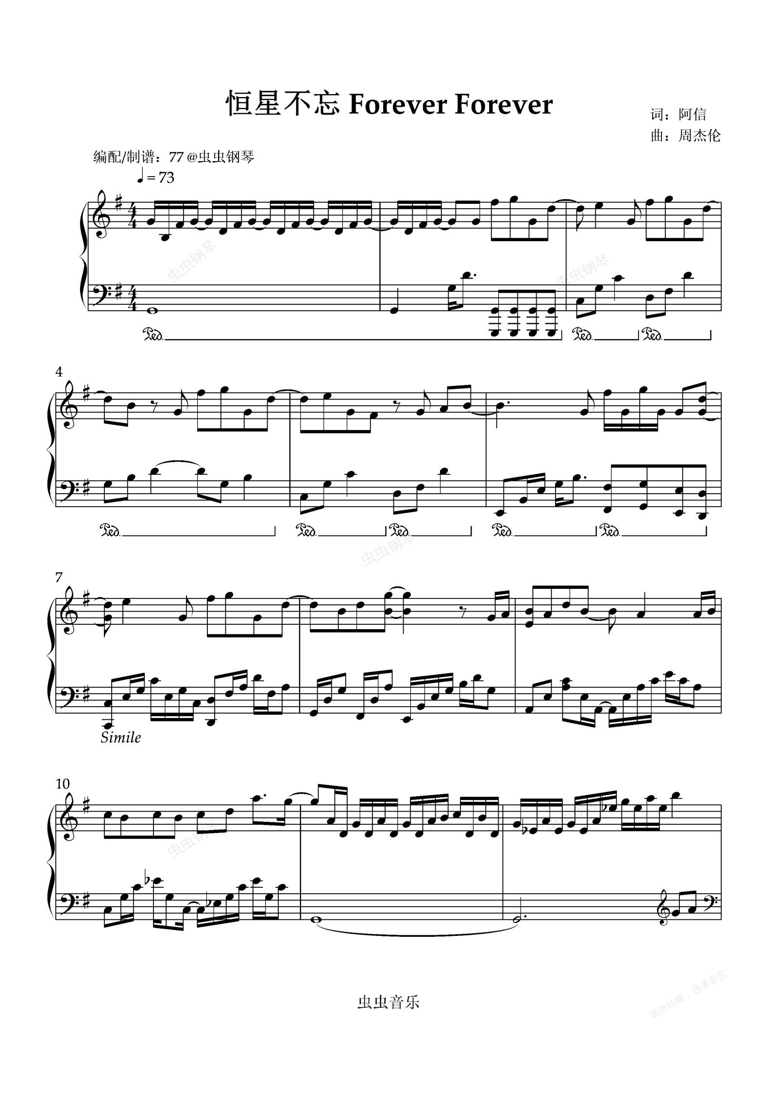 钢琴谱:《恒星不忘 Forever Forever》-周杰伦、言承旭 、吴建豪 、周渝民、 阿信