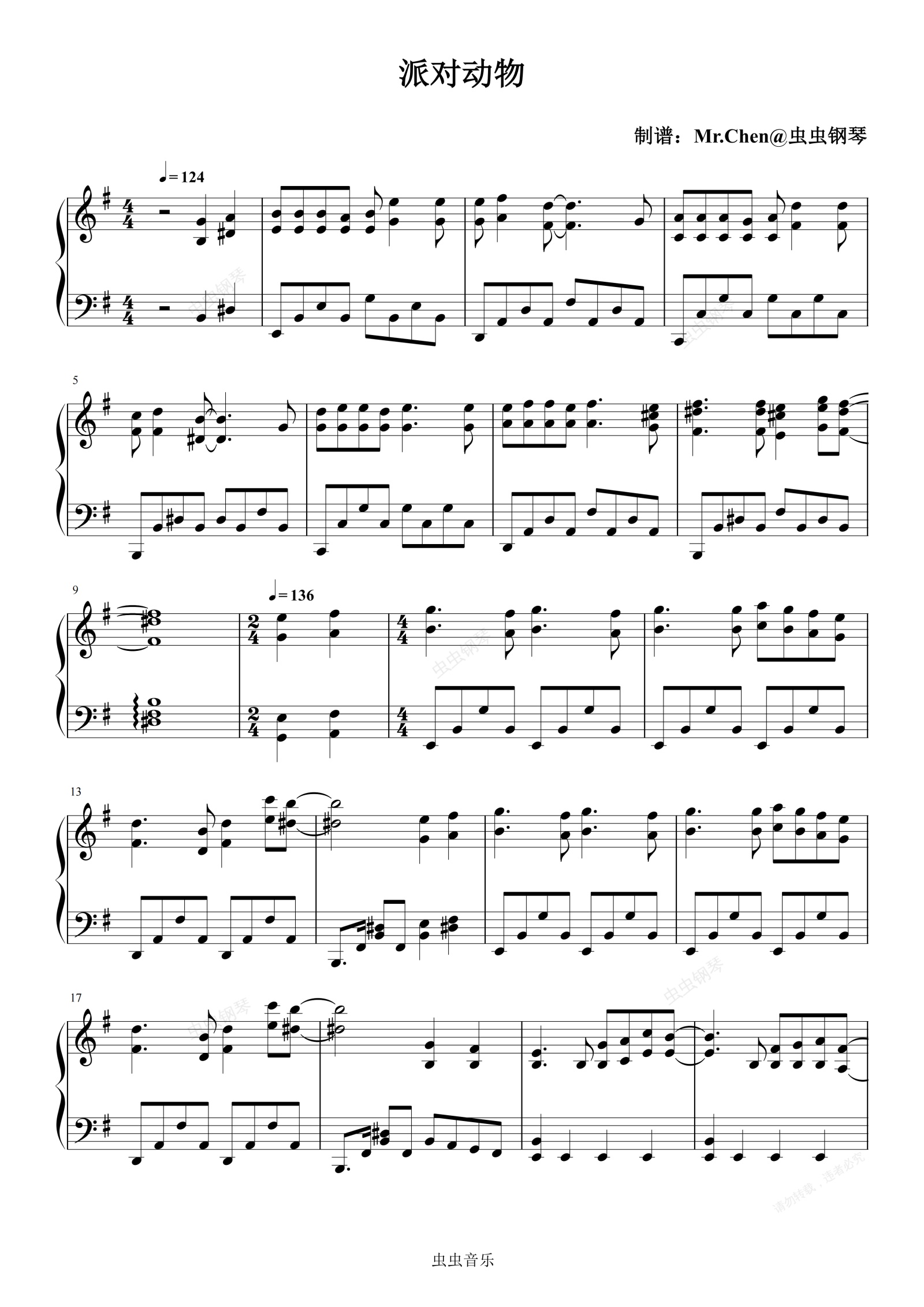 钢琴谱:派对动物 - 【疯狂动物成2】中文主题曲
