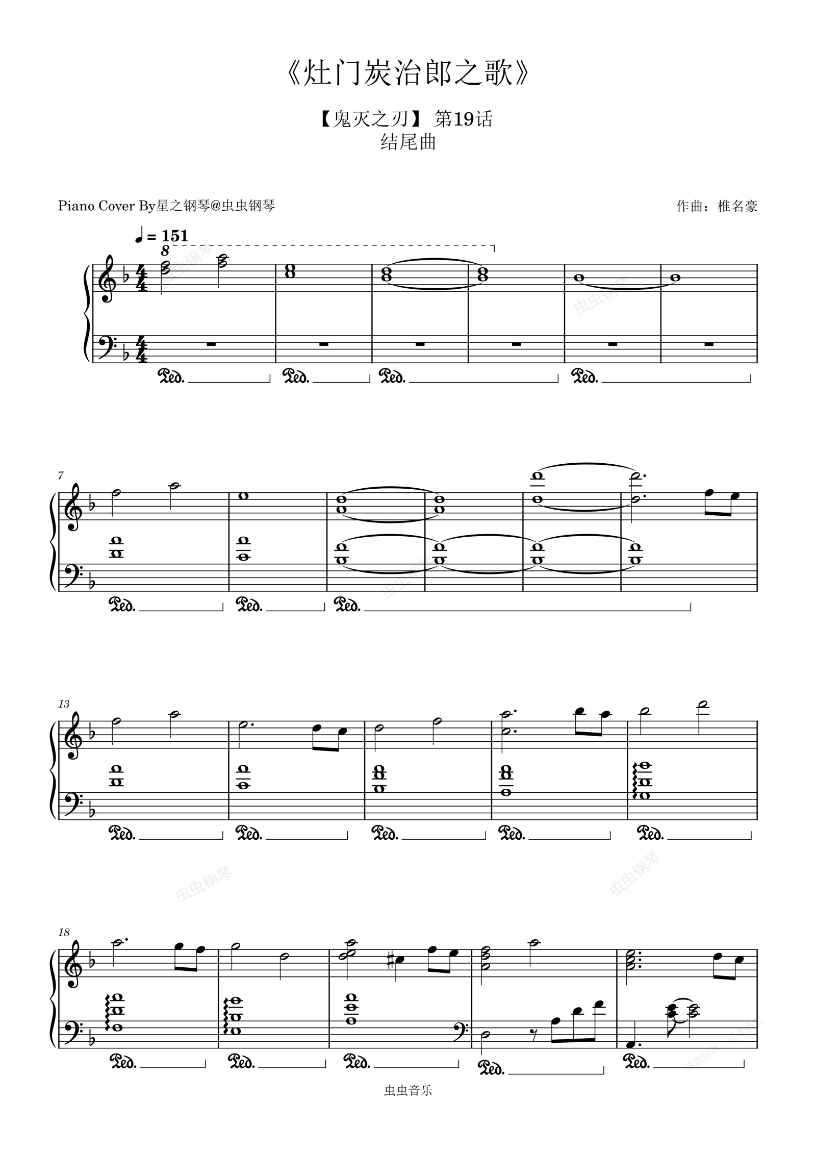 钢琴谱:【鬼灭之刃】19集ED《灶门炭治郎之歌》完整还原版~星之钢琴~