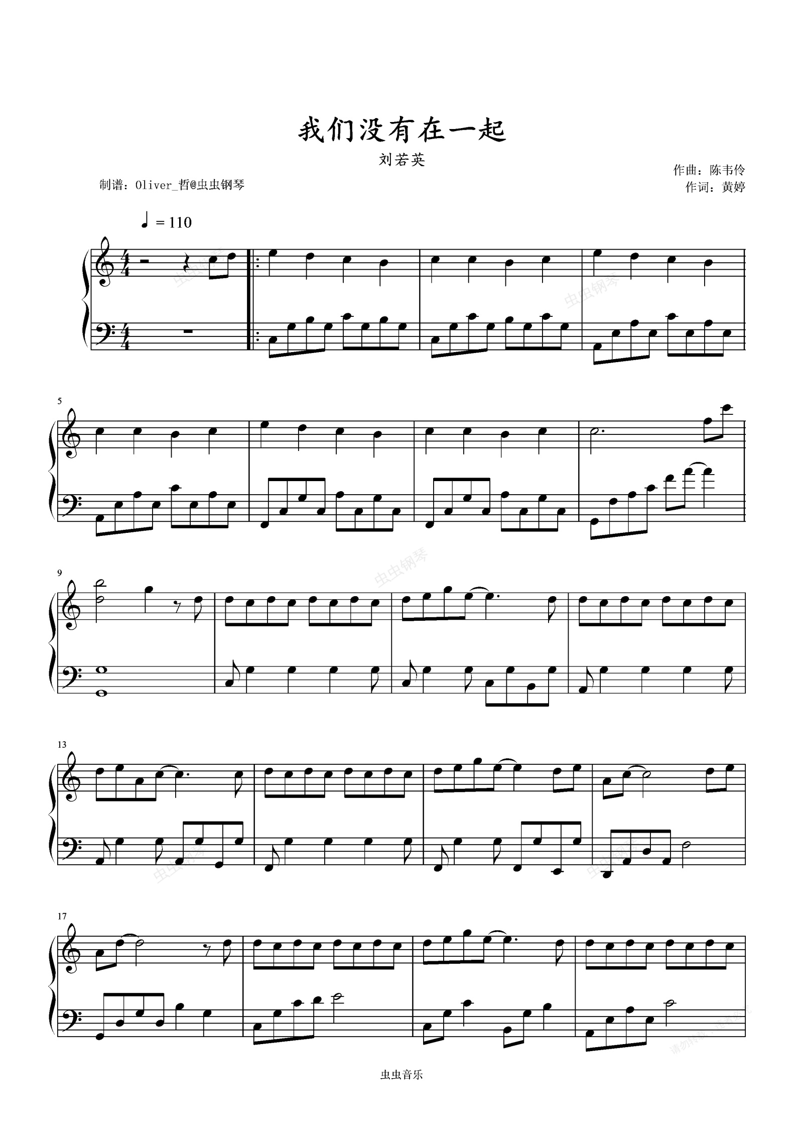 钢琴谱:我们没有在一起 C调精编简易版 刘若英 经典怀旧 好听易弹(偶像剧《偷心大圣PS男》片尾曲)