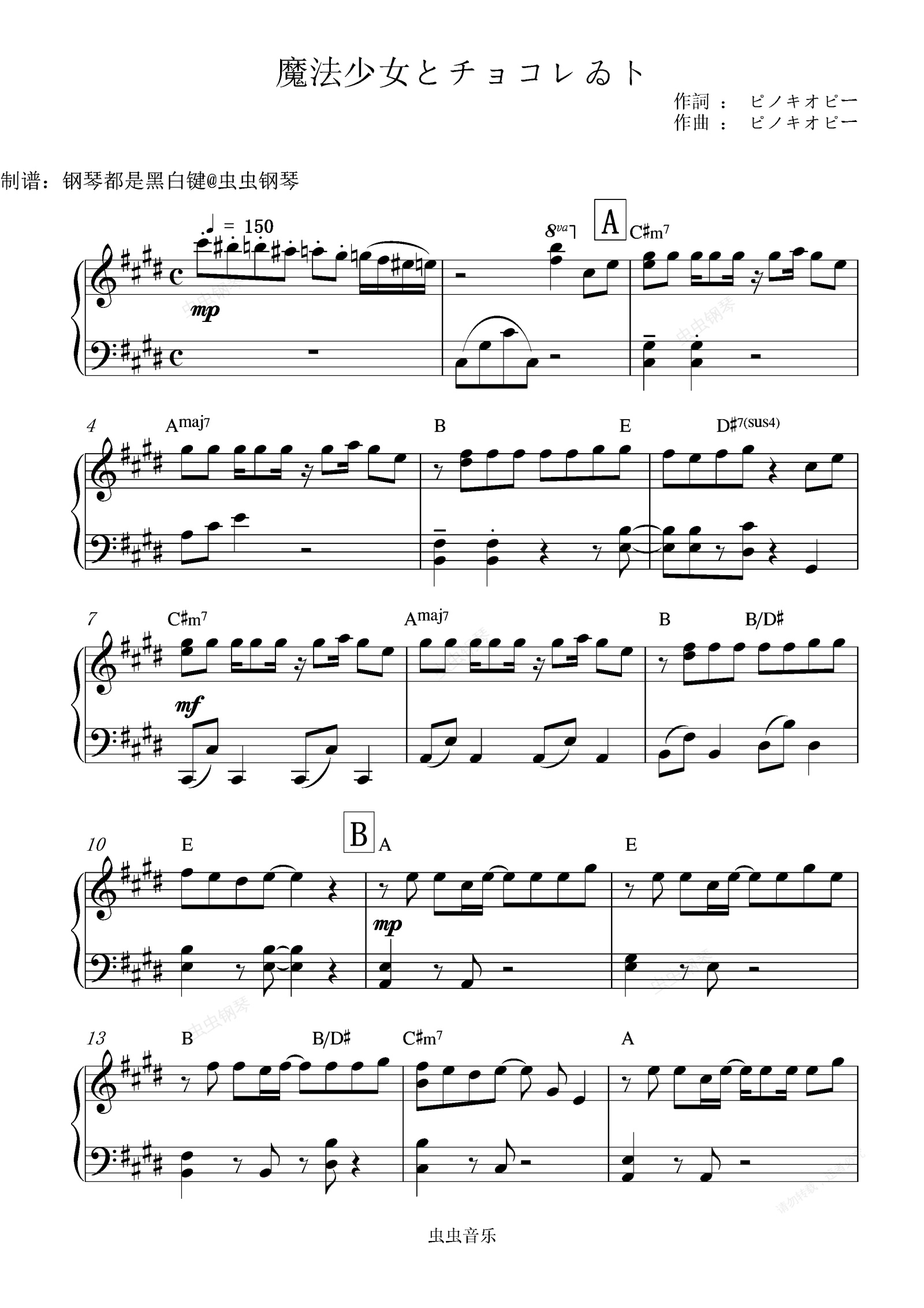 钢琴谱:【初音ミク】魔法少女とチョコレゐト