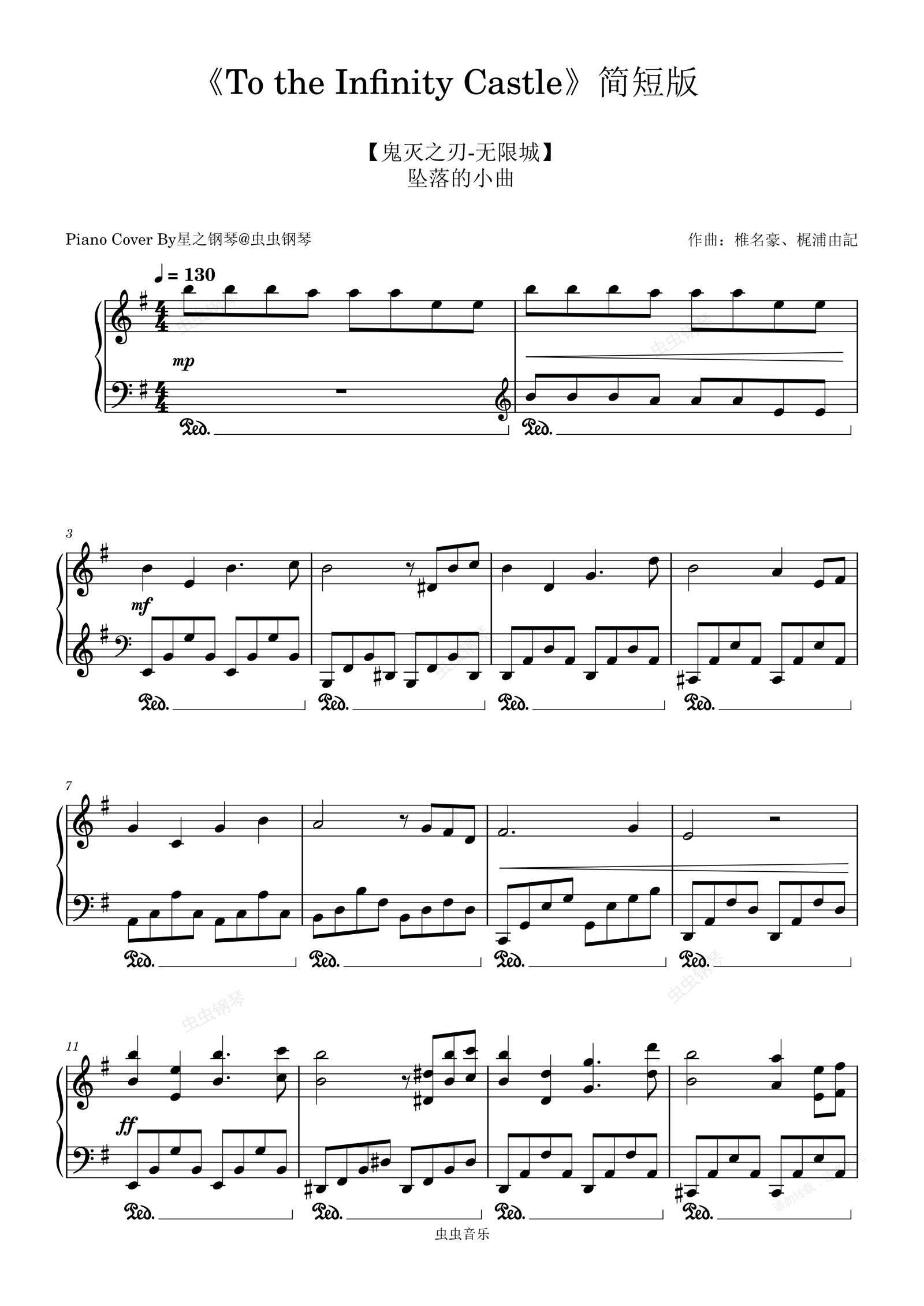 钢琴谱:【鬼灭之刃-无限城篇】简短《To the Infinity Castle》钢琴独奏~星之钢琴~