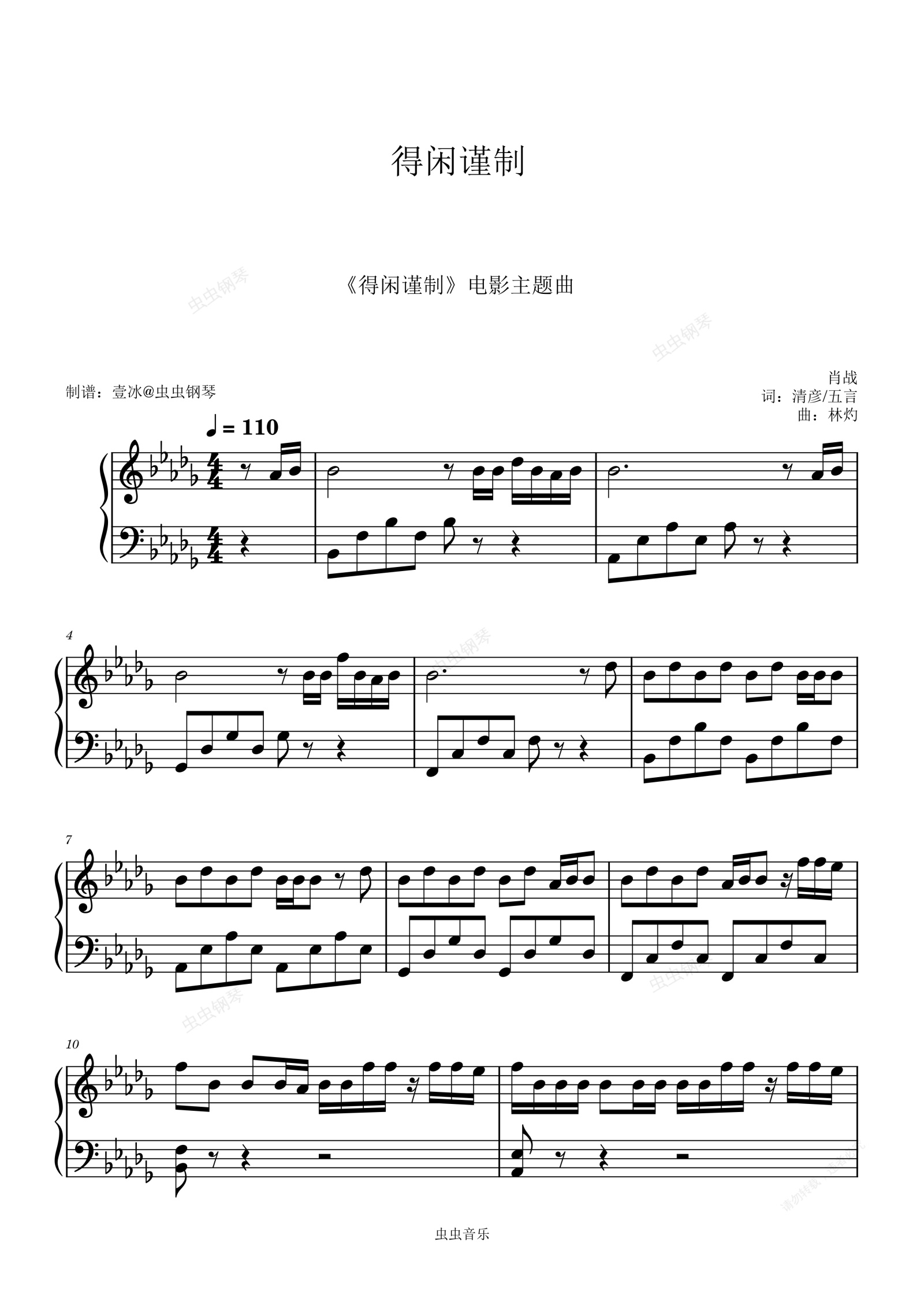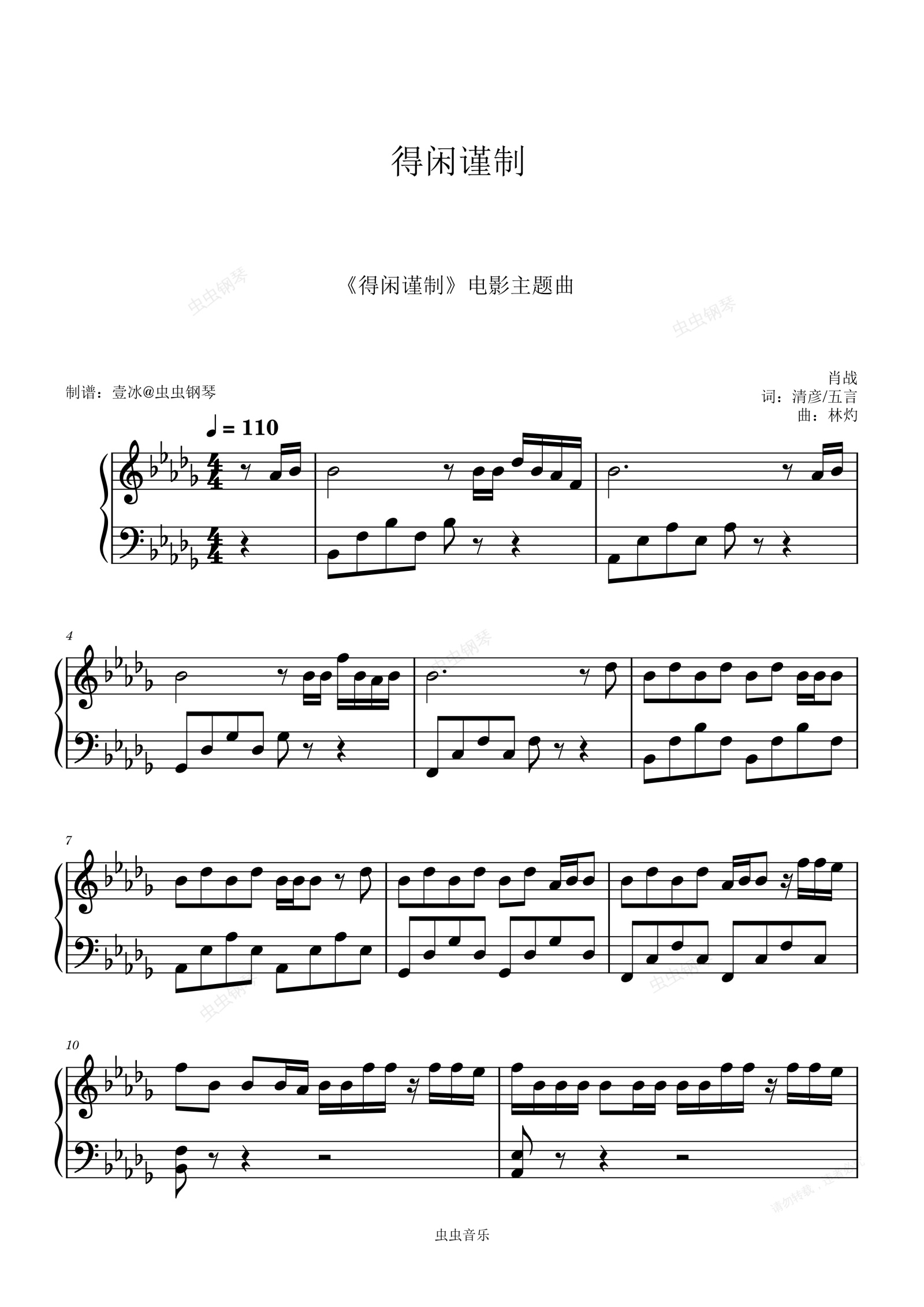 钢琴谱:得闲谨制 (《得闲谨制》电影主题曲) - 原调