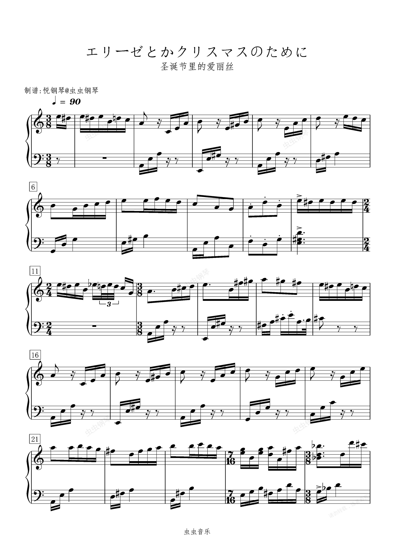 钢琴谱:圣诞节里的爱丽丝/エリーゼとかクリスマスのために 【激情】