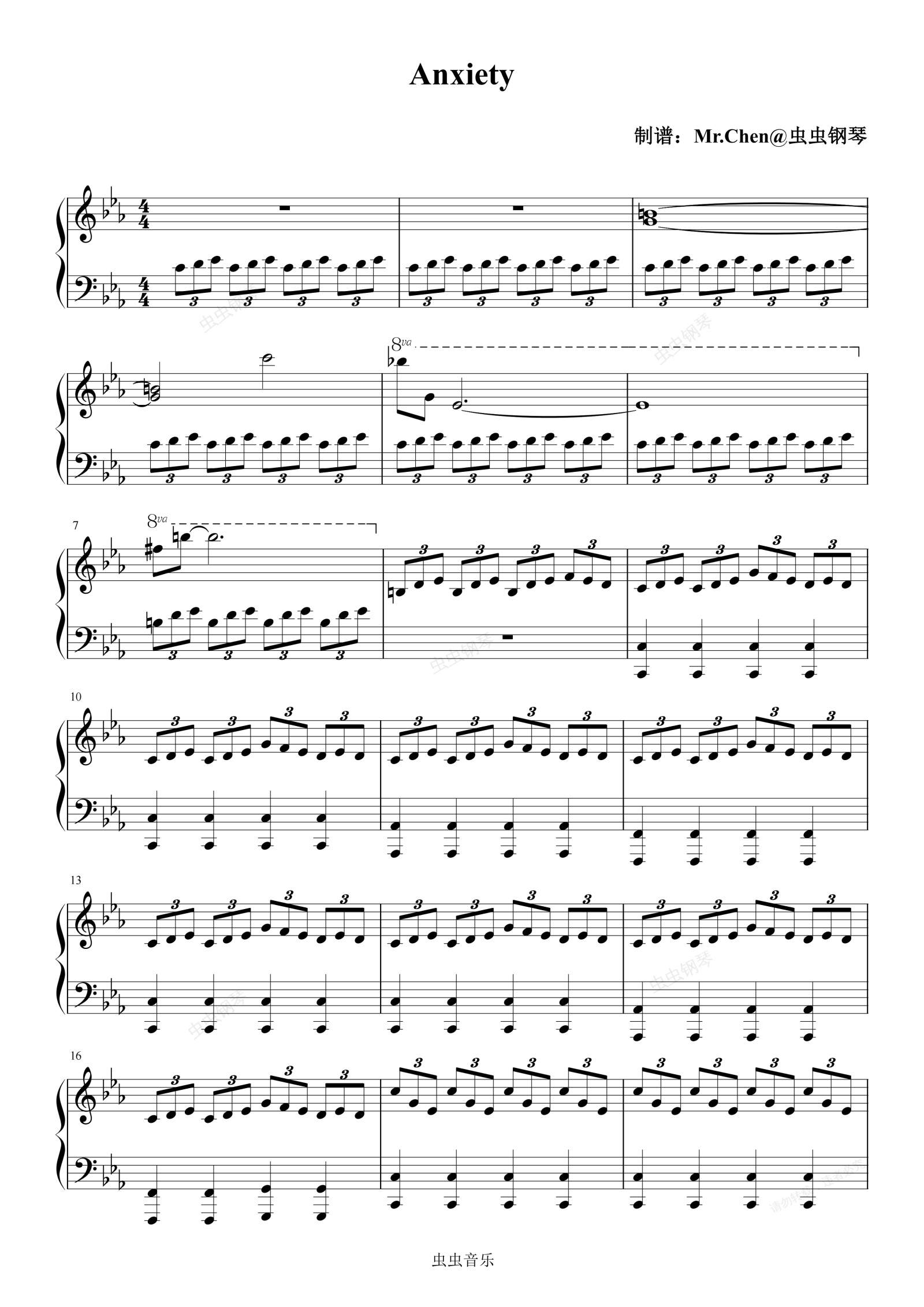 钢琴谱:Anxiety - Tony Ann 极度还原