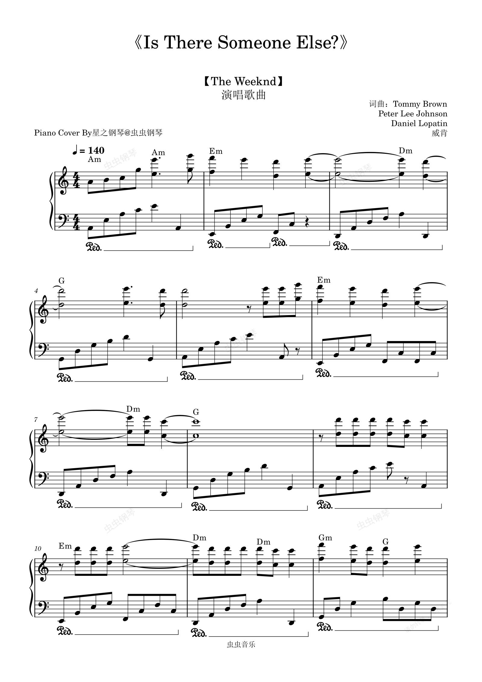 钢琴谱:【威肯The Weeknd】《Is There Someone Else?》钢琴独奏版~星之钢琴~