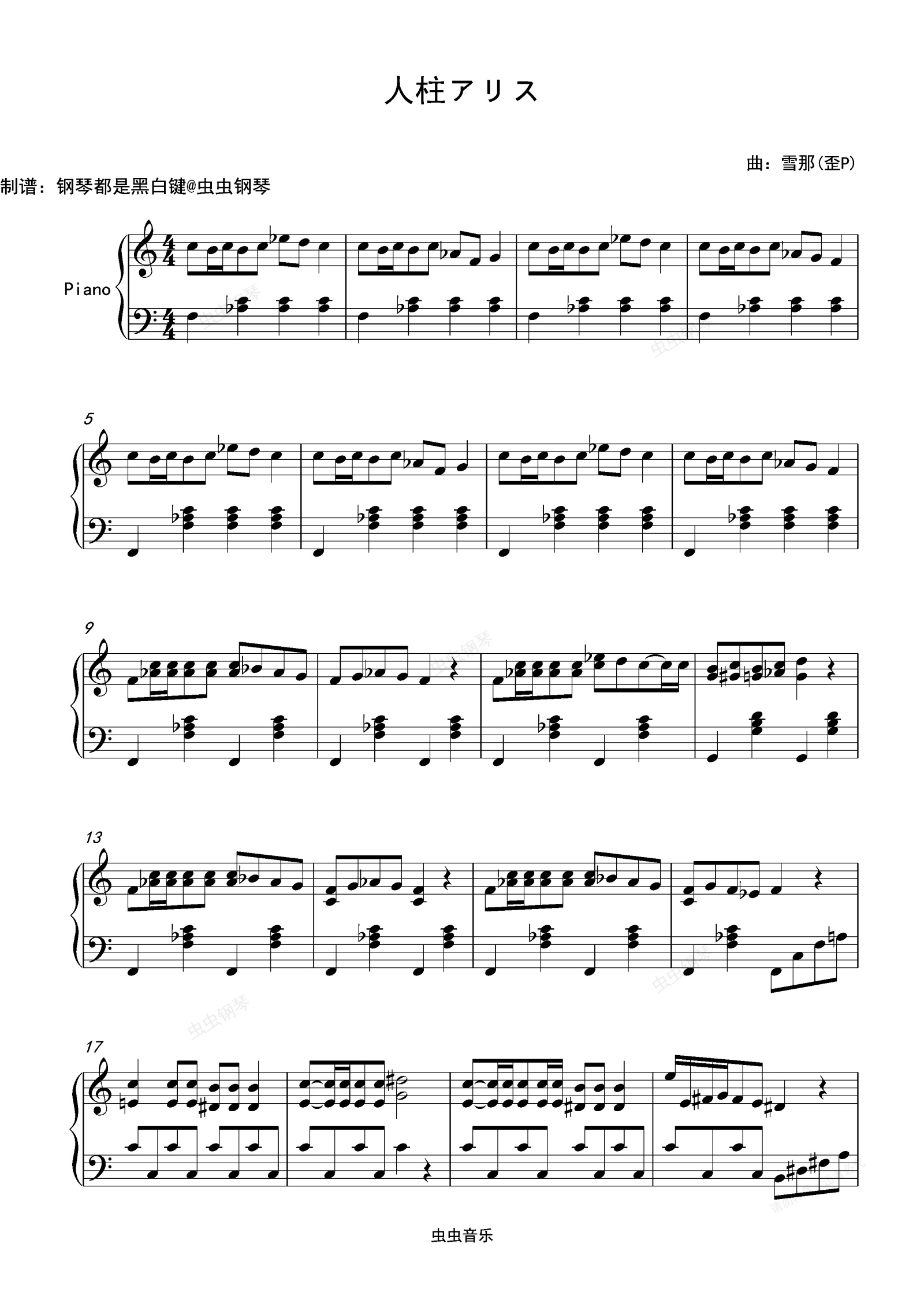 钢琴谱:[童年阴影]人柱アリス(人柱爱丽丝)