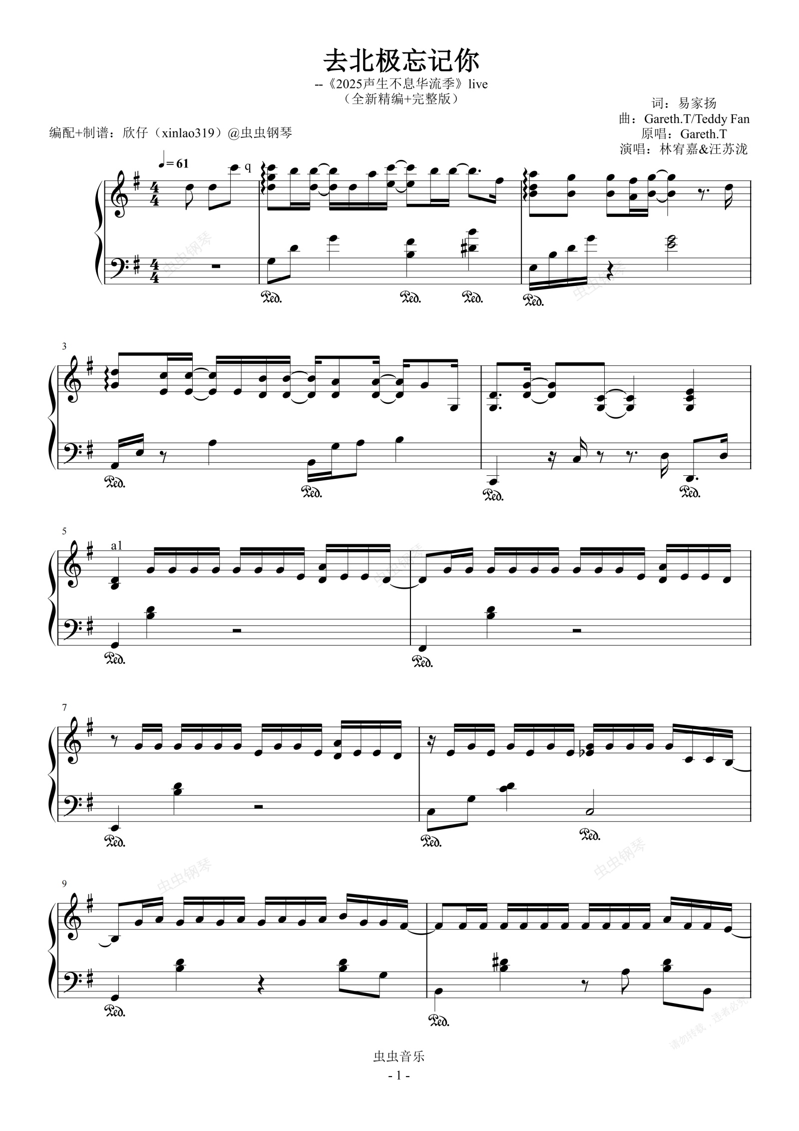 钢琴谱:去北极忘记你(G、全新精编+完整版)
