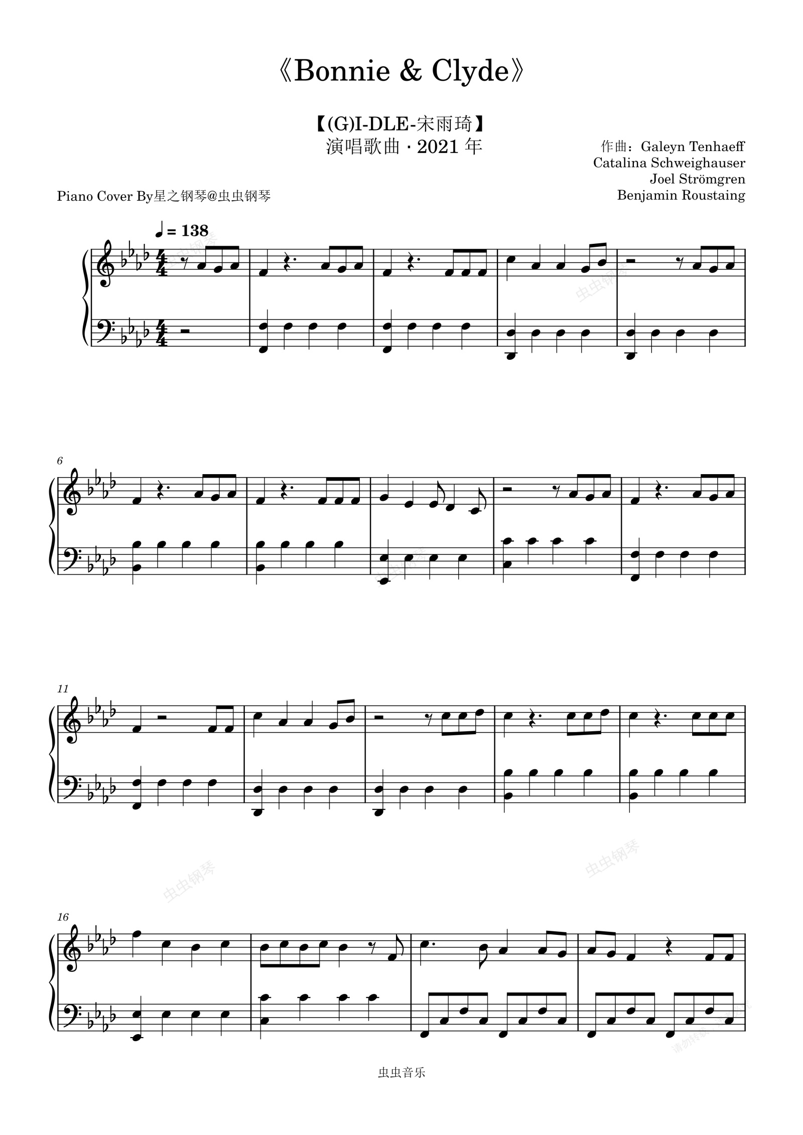 钢琴谱:【(G)I-DLE-宋雨琦】《Bonnie & Clyde》钢琴独奏版~星之钢琴~