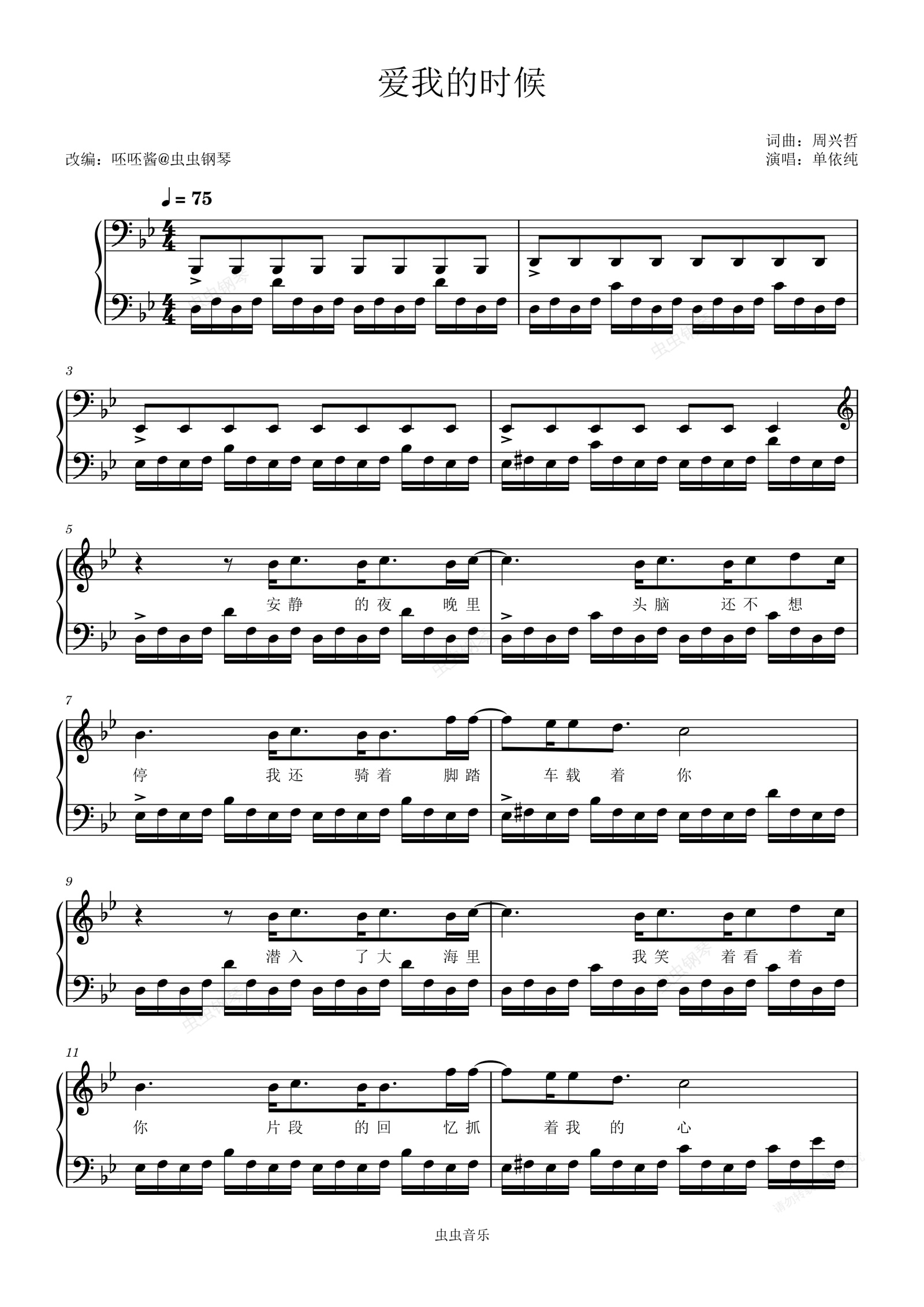 钢琴谱:爱我的时候【男生版】-单依纯-Bb调