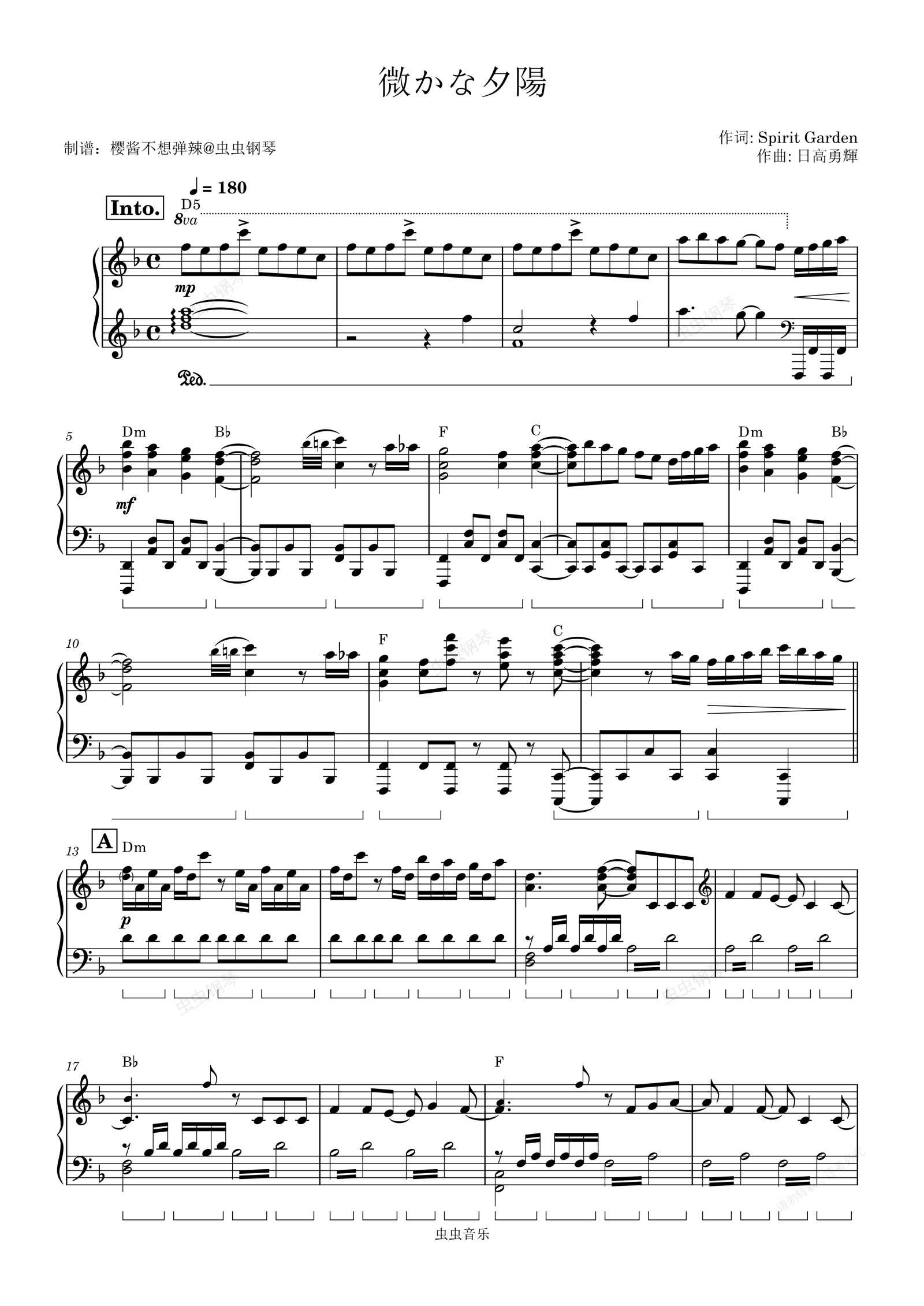 钢琴谱:微かな夕陽 魔法少女ホロウィッチ!
