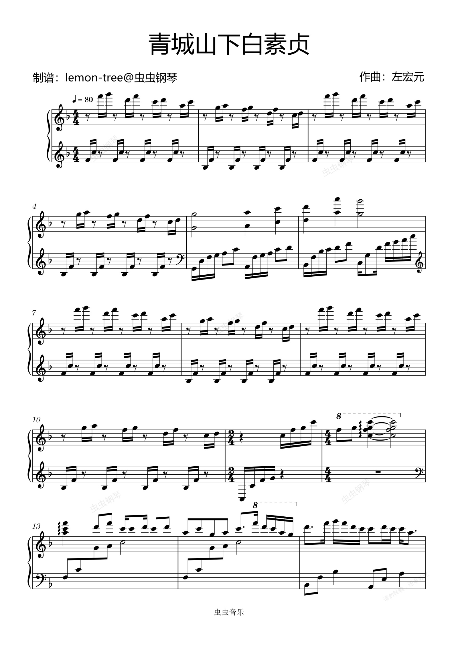 钢琴谱:青城山下白素贞-F调【飘逸版】