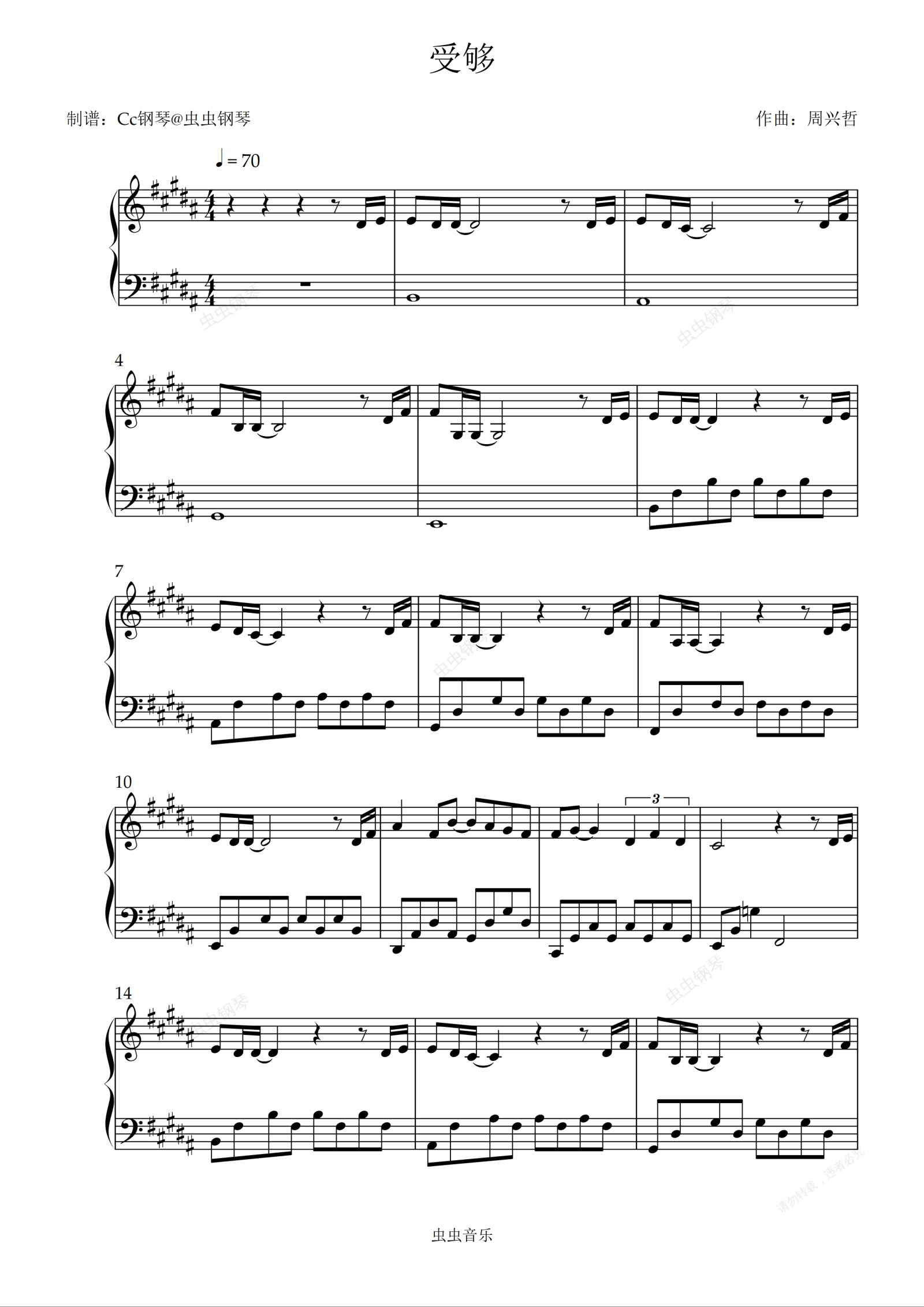 钢琴谱:受够 原调 好听易上手