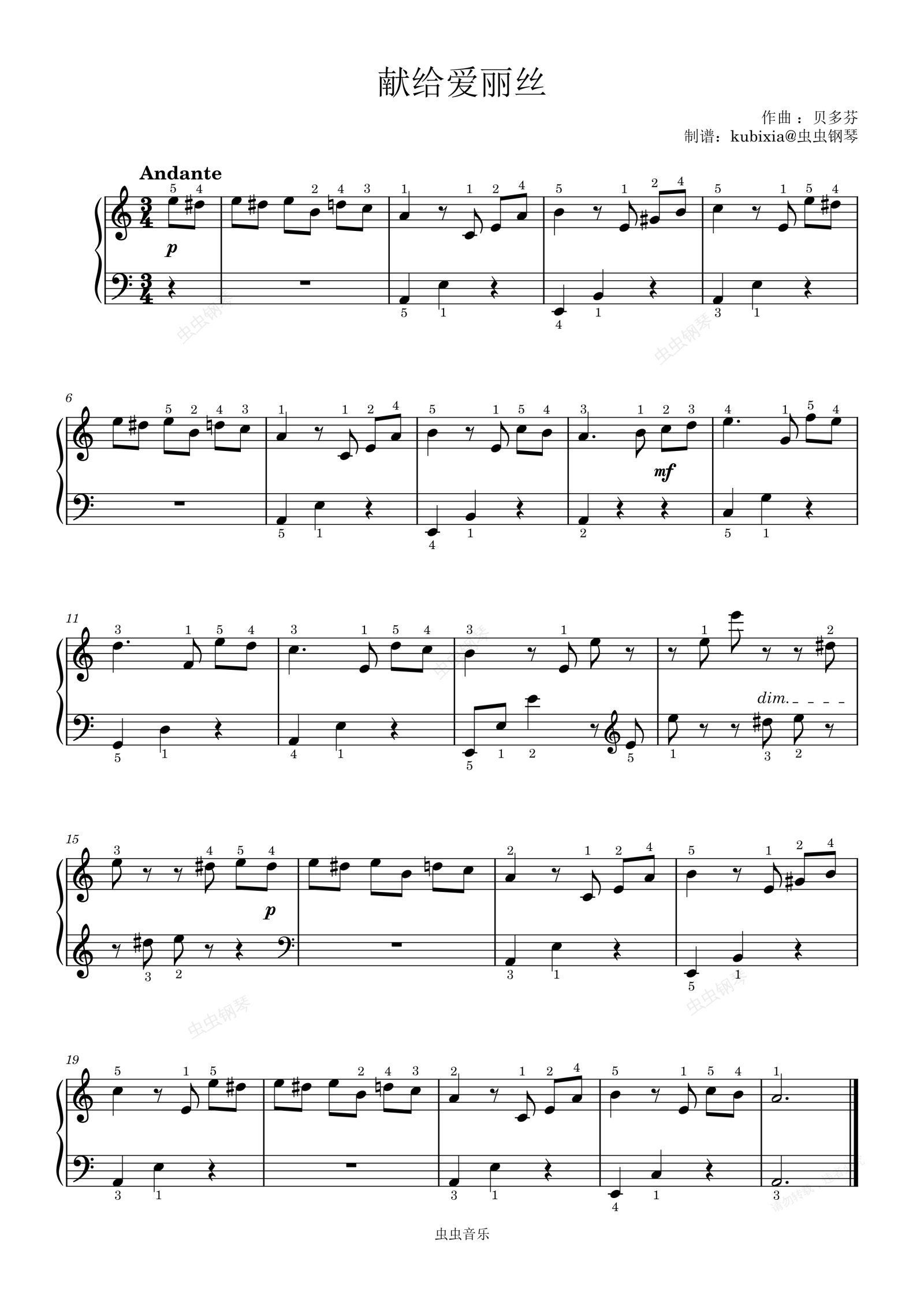 钢琴谱:献给爱丽丝(简易版)