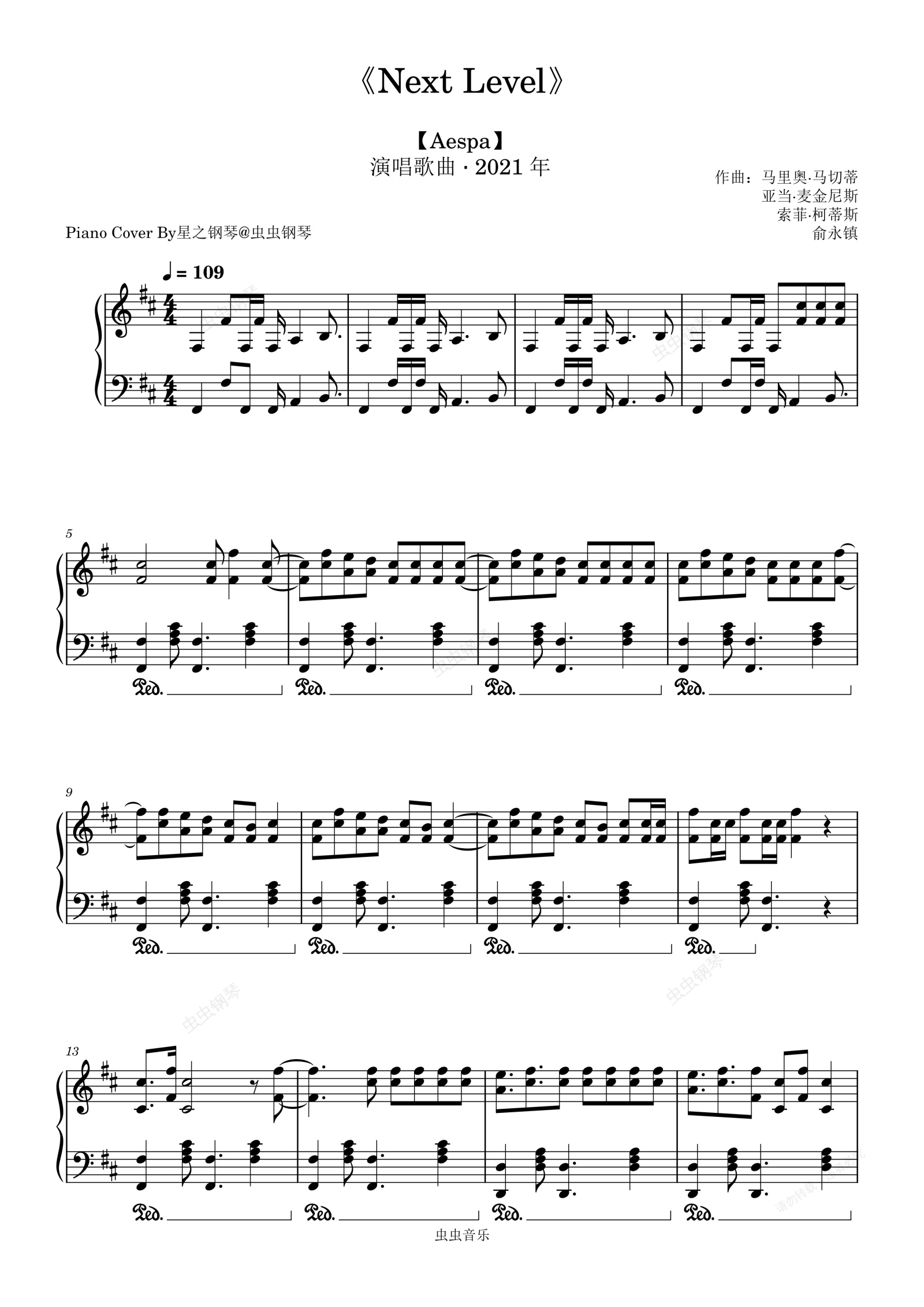 钢琴谱:【aespa】《Next Level》钢琴还原独奏版~星之钢琴~