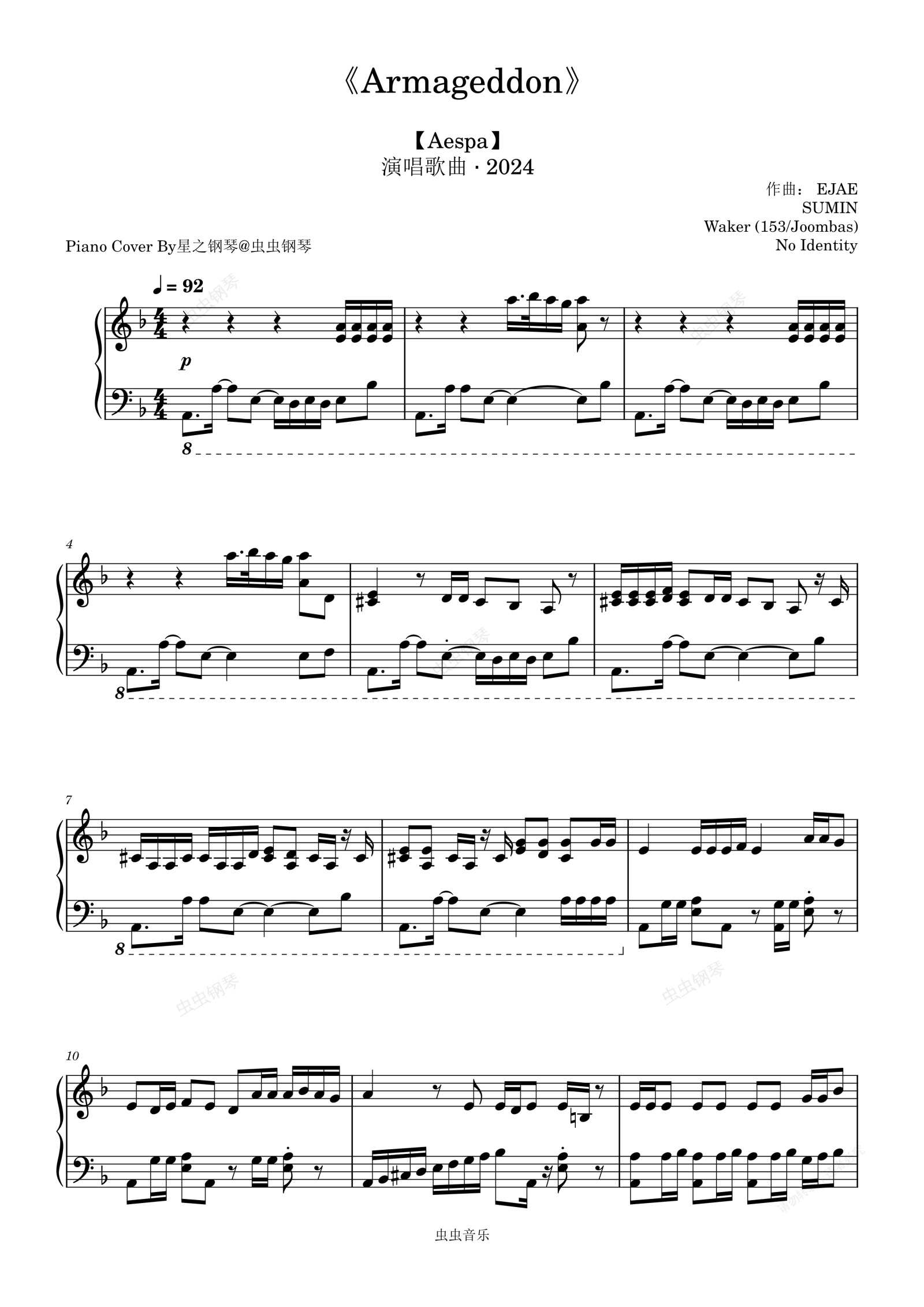 钢琴谱:【aespa】《Armageddon》钢琴还原独奏版~星之钢琴~