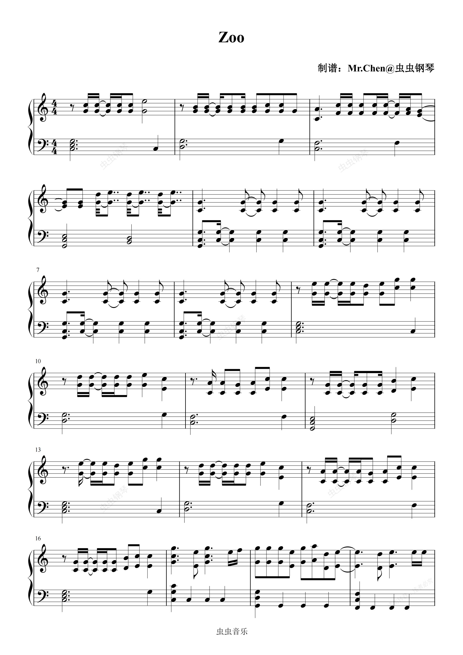 钢琴谱:Zoo C调- 《疯狂动物成2》主题曲 极度还原