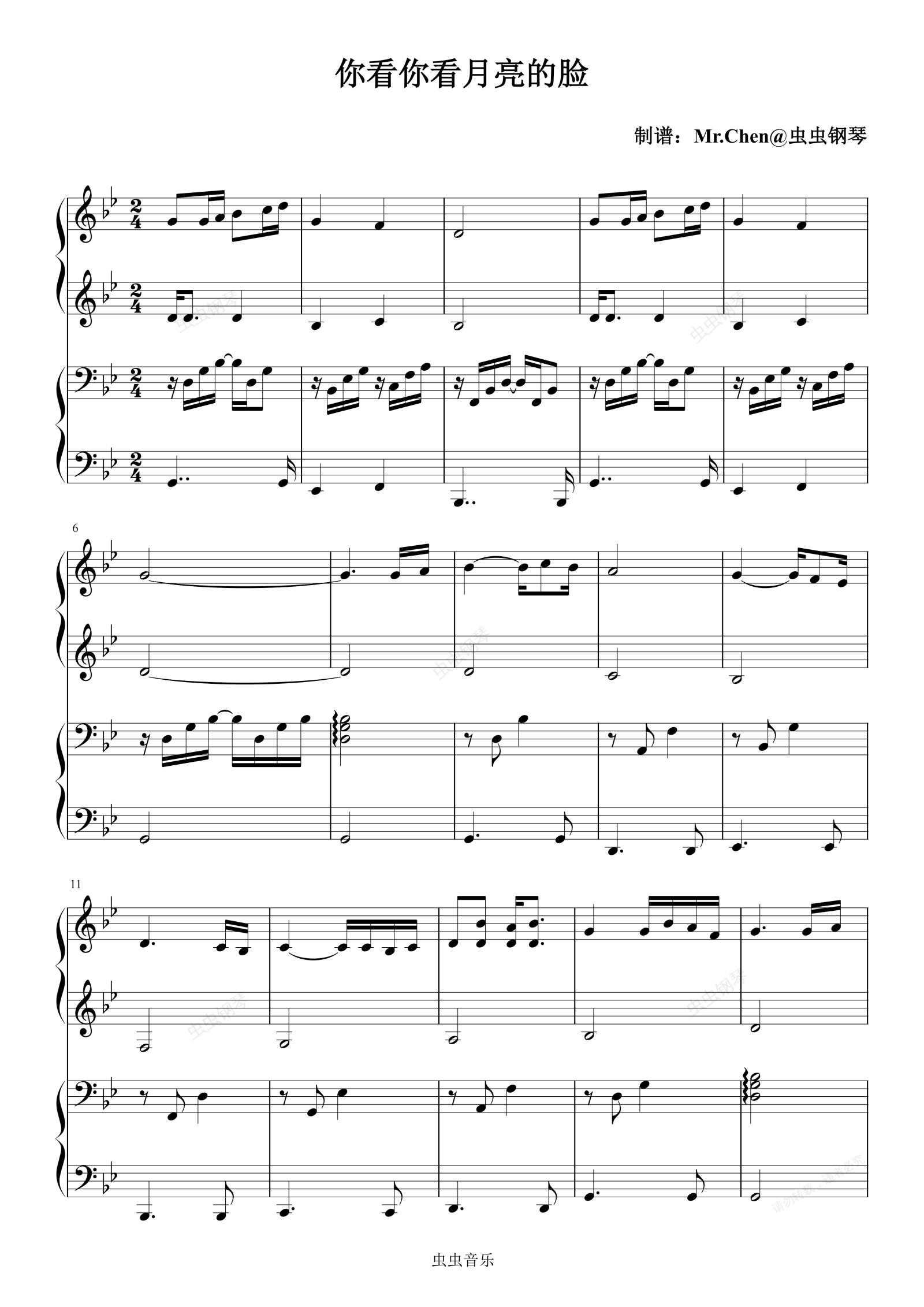 钢琴谱:你看你看月亮的脸 (四手联弹)- 孟庭苇
