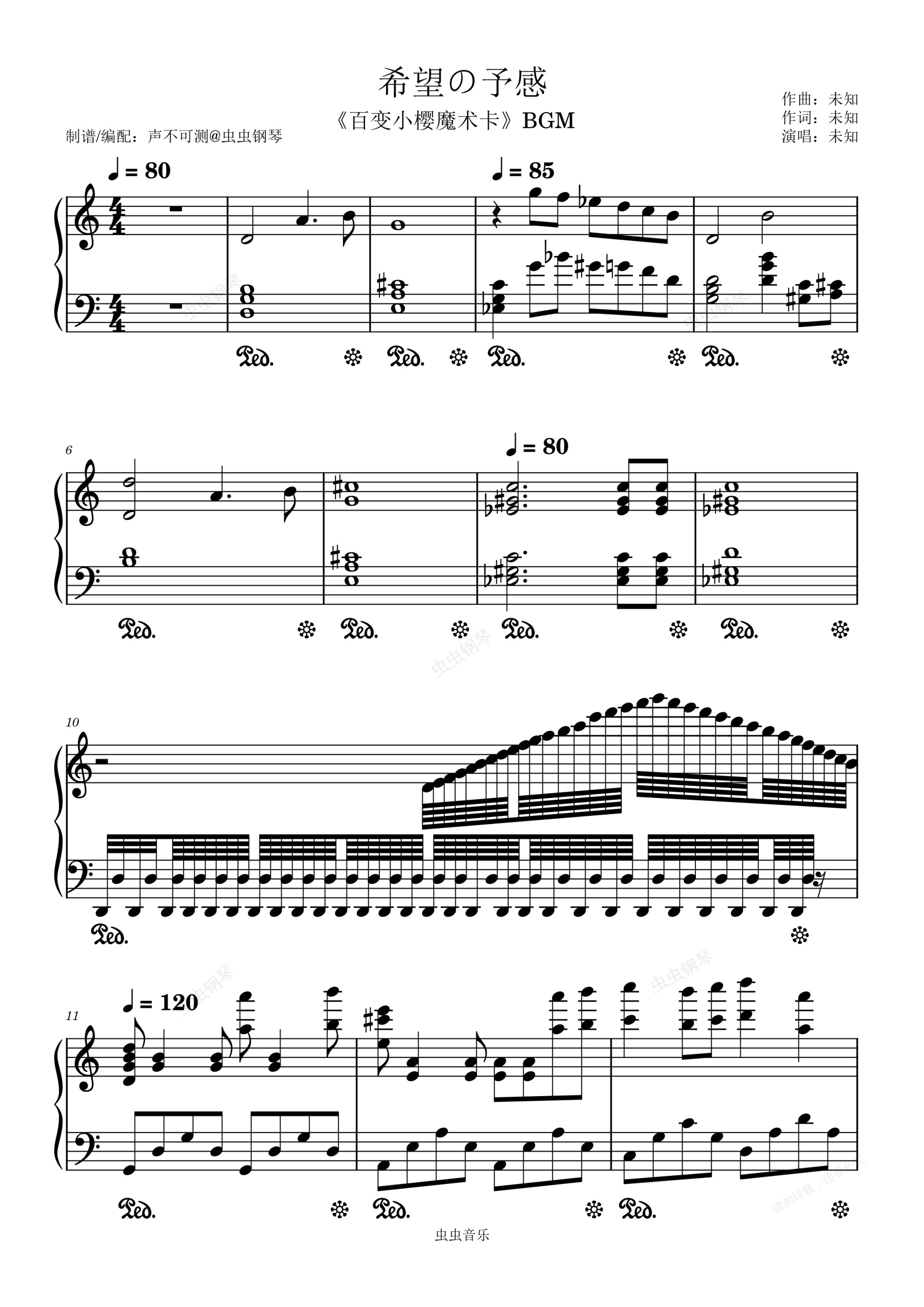 钢琴谱:希望の予感《百变小樱魔术卡》BGM - 声不可测