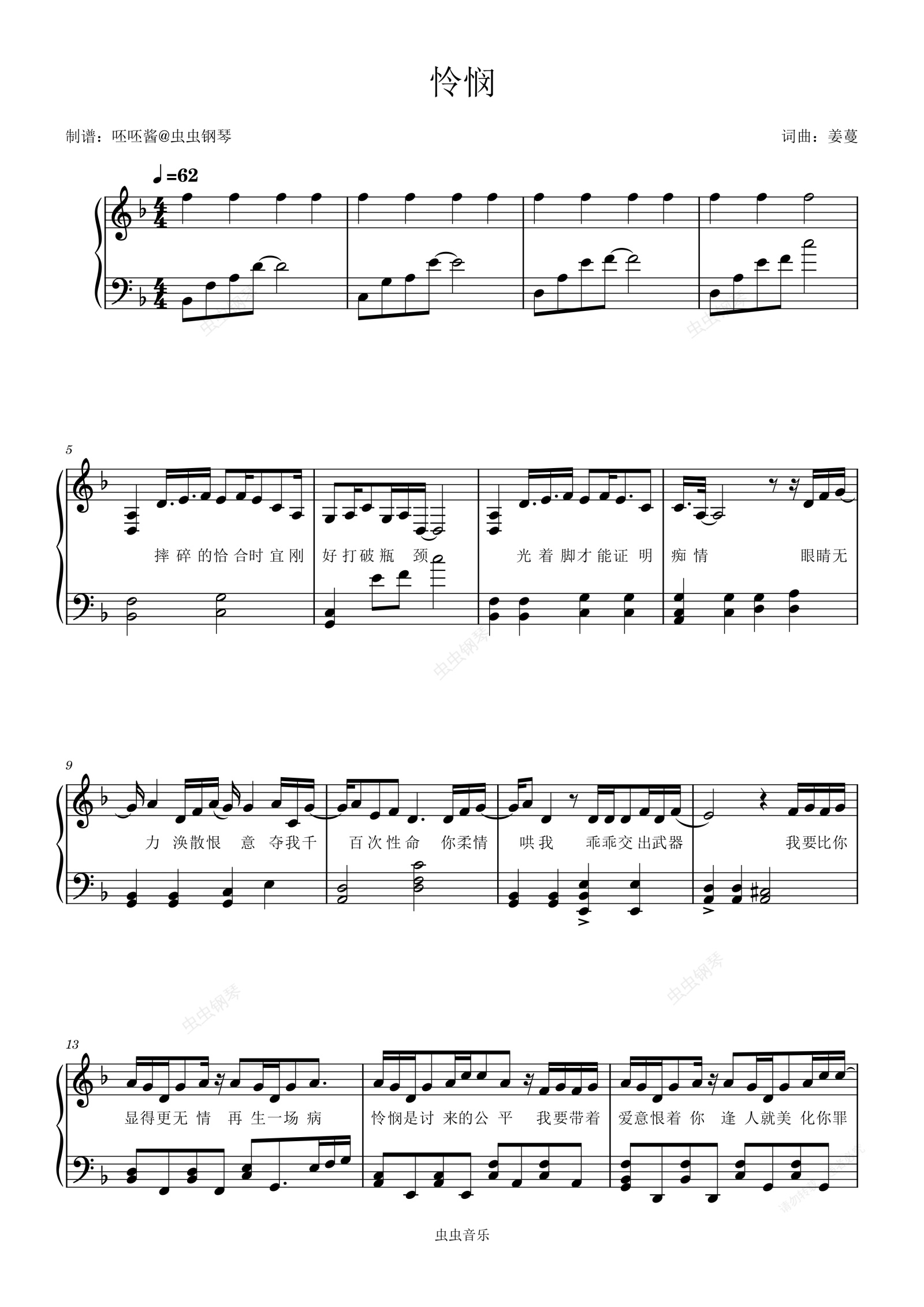 钢琴谱:怜悯【demo版】-姜蔓-F调