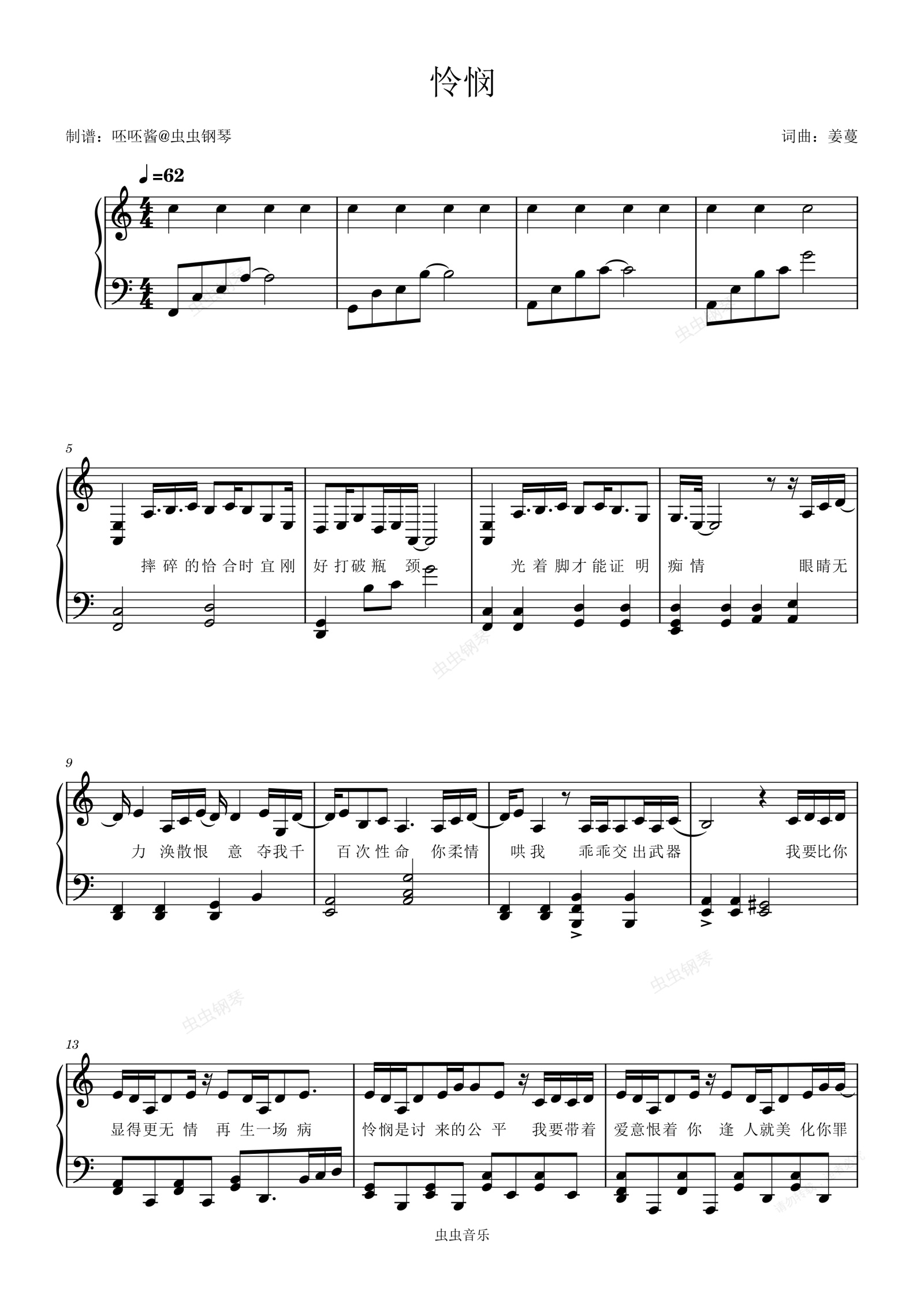钢琴谱:怜悯【男生demo版】-姜蔓-C调