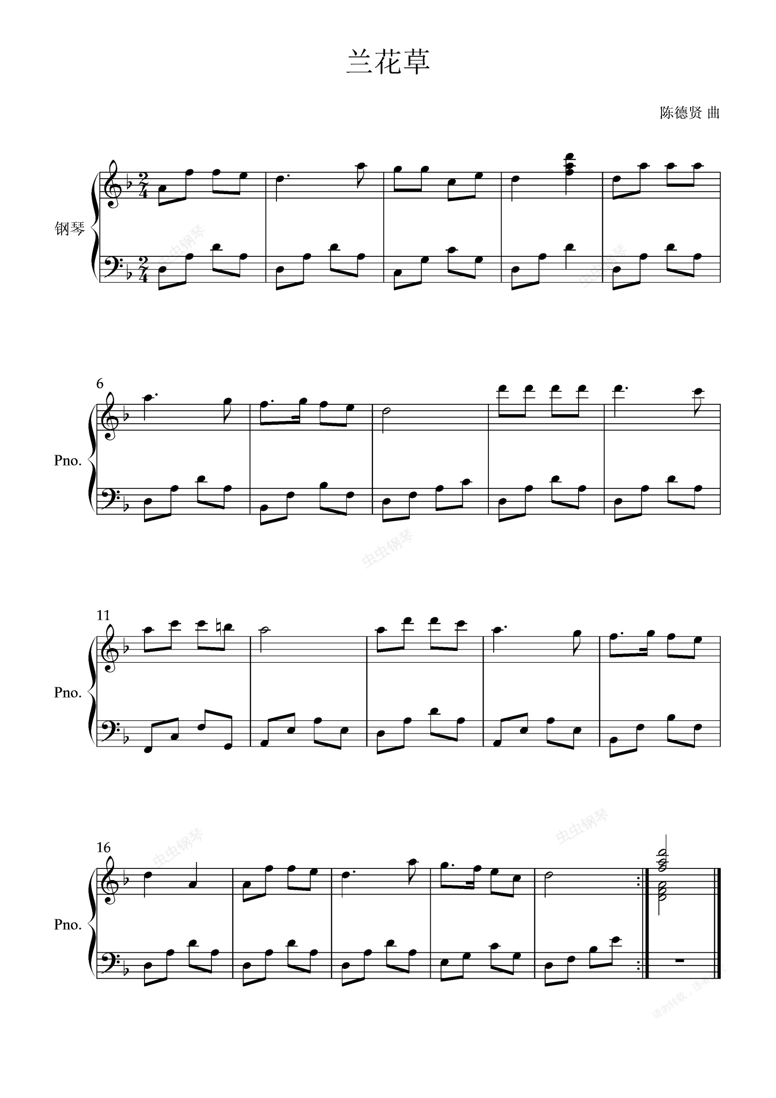 您的位置: 首页 > 钢琴谱库 > 兰花草钢琴谱-陈德贤-老年钢琴实用教程(第2册)