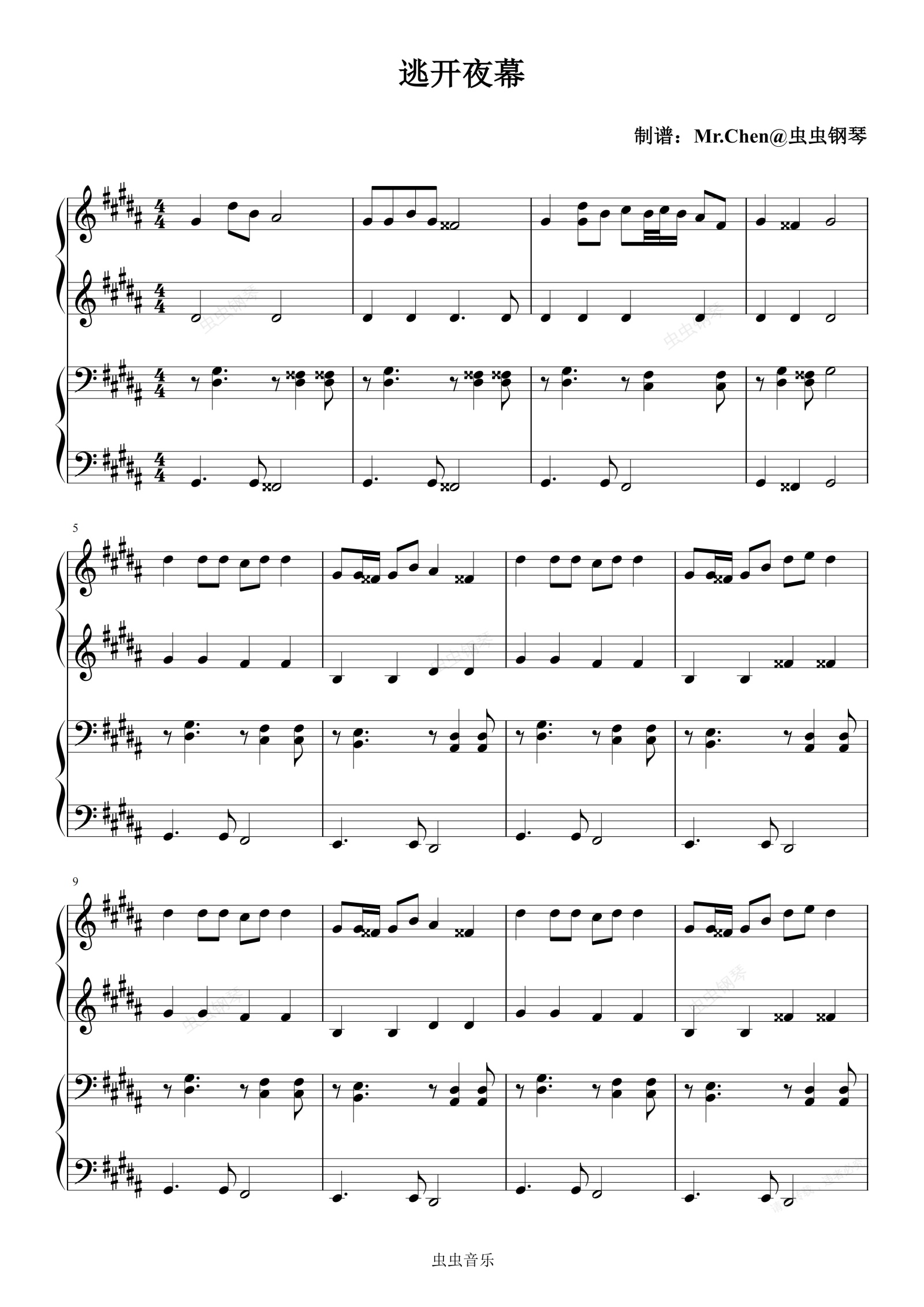钢琴谱:逃开夜幕 (四手联弹)-【音乐缘计划】周深