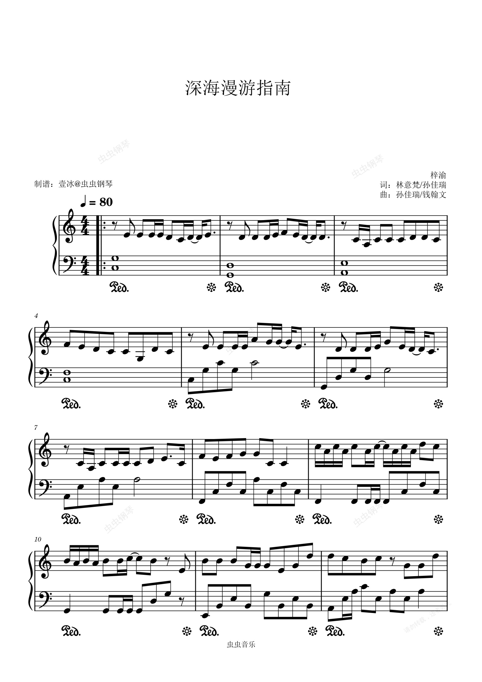 钢琴谱:深海漫游指南 - 梓渝 C调