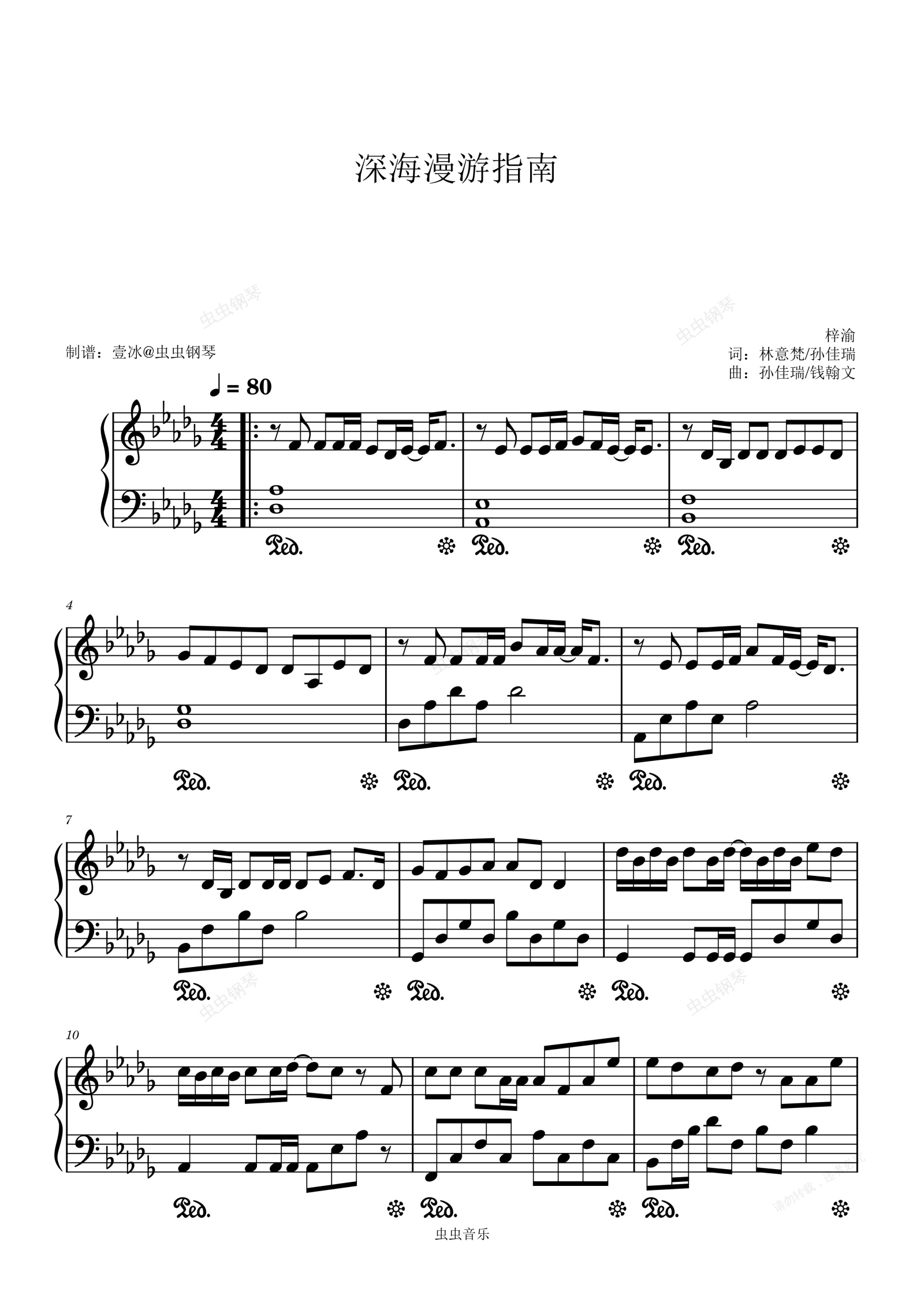 钢琴谱:深海漫游指南 - 梓渝 原调