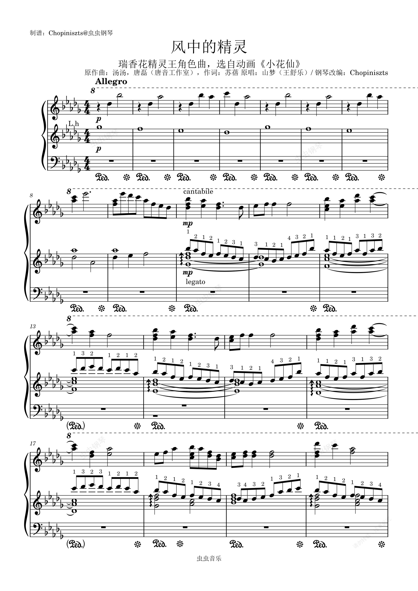 钢琴谱:《风中的精灵》动画《小花仙》插曲,瑞香花精灵王山梦角色曲完整版钢琴改编 全网首发