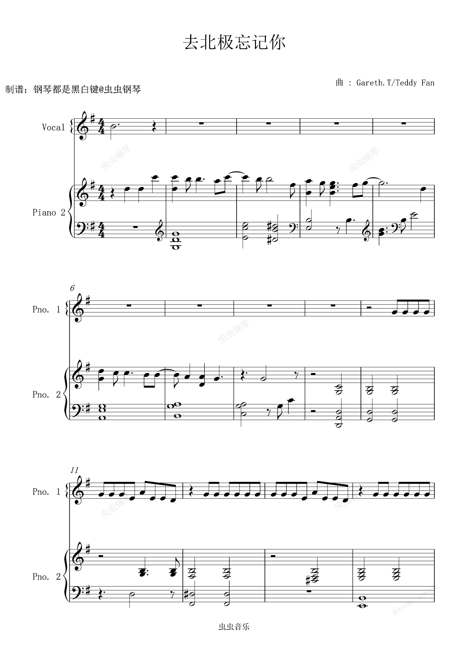 钢琴谱:去北极忘记你(钢琴弹唱版)