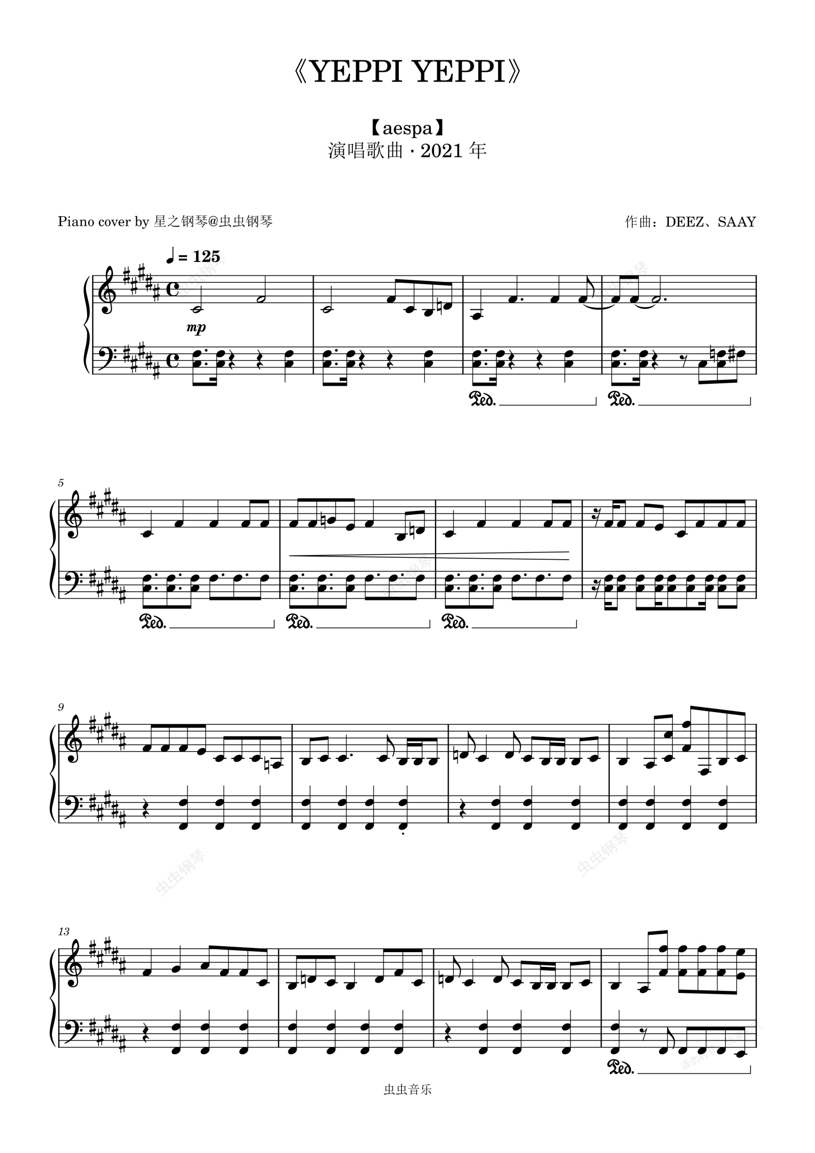 钢琴谱:【aespa】《YEPPI YEPPI》钢琴还原独奏版~星之钢琴~