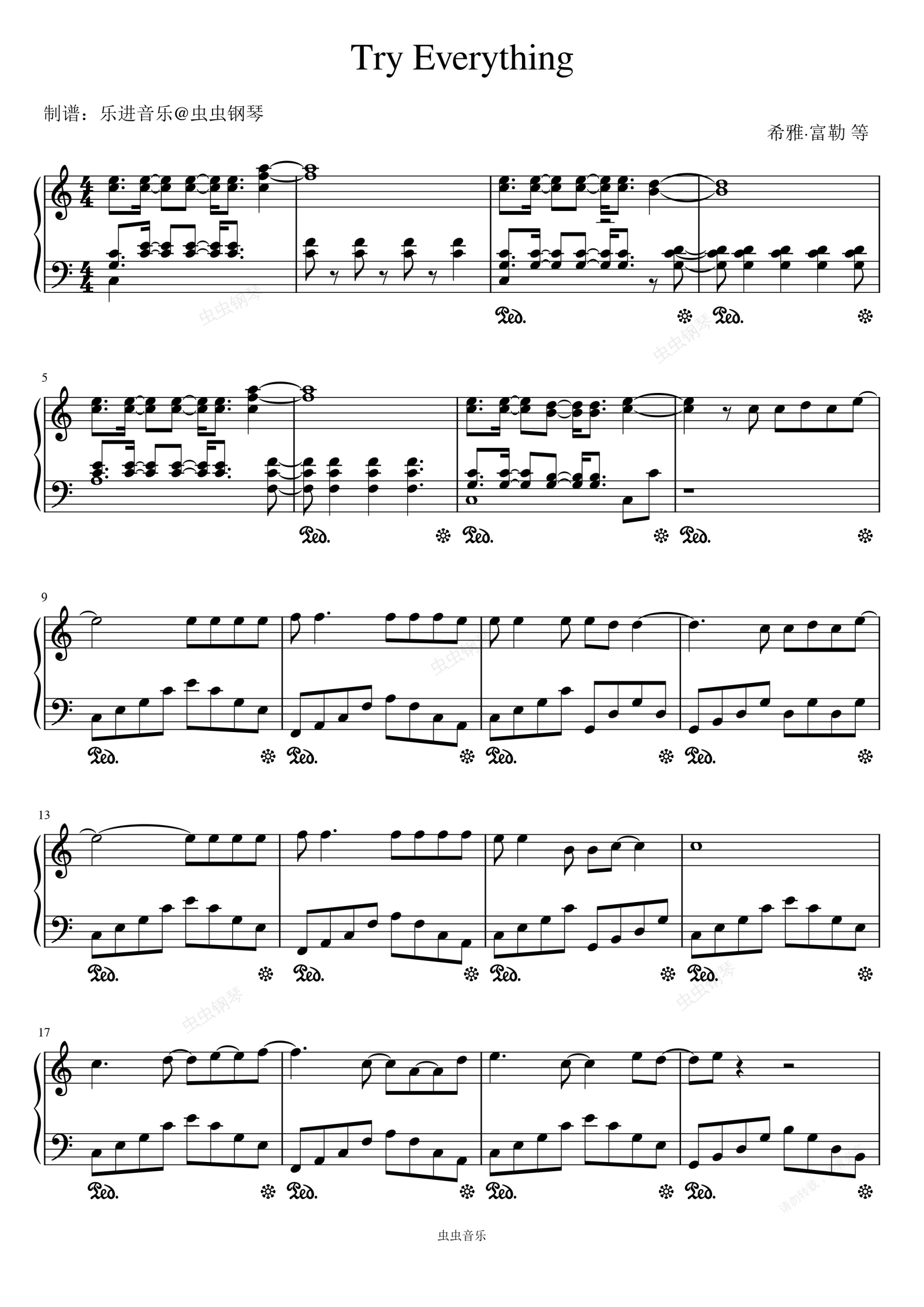 钢琴谱:《Try Everything》C调
