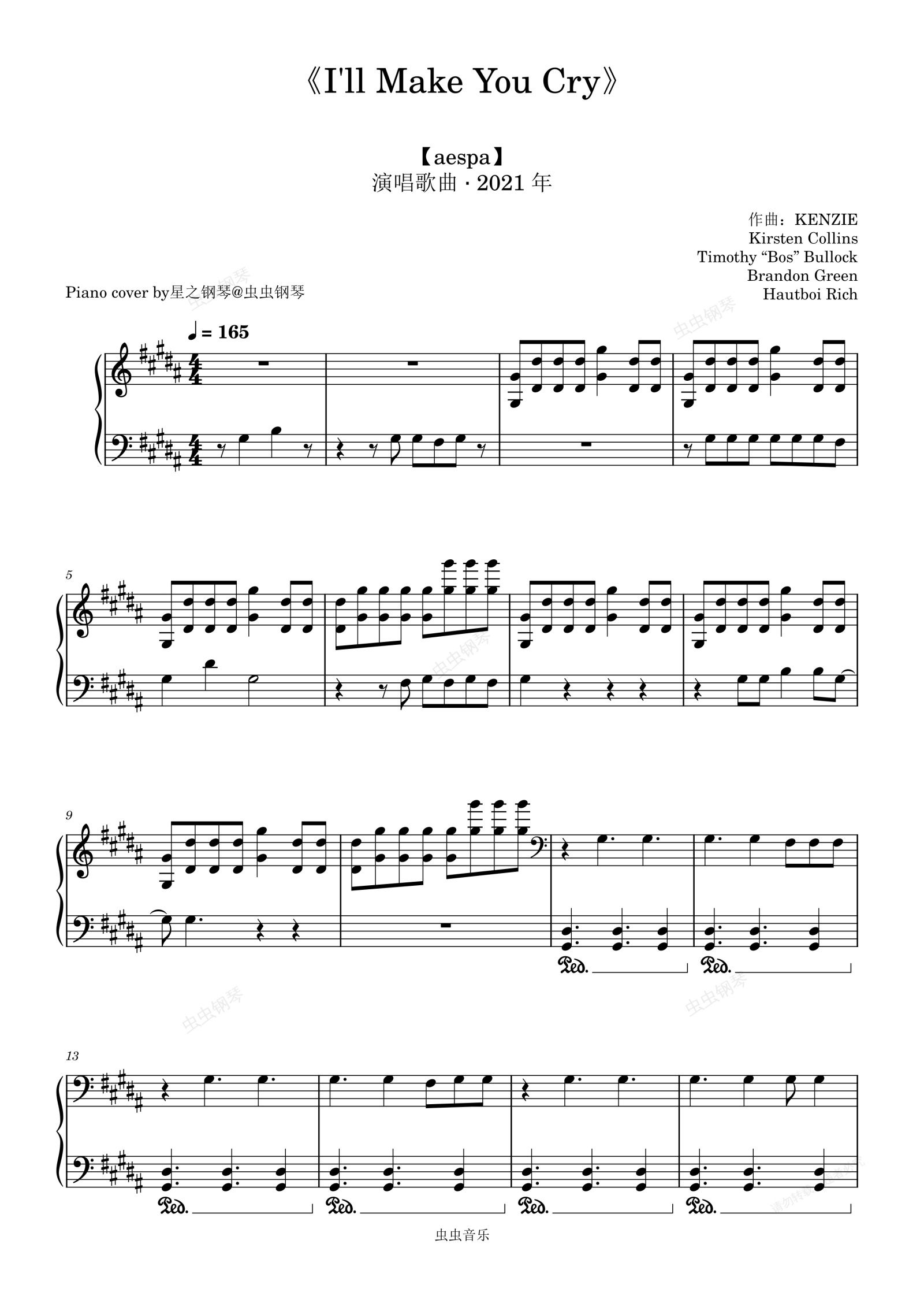 钢琴谱:【aespa】《I'll Make You Cry》钢琴还原独奏版~星之钢琴~
