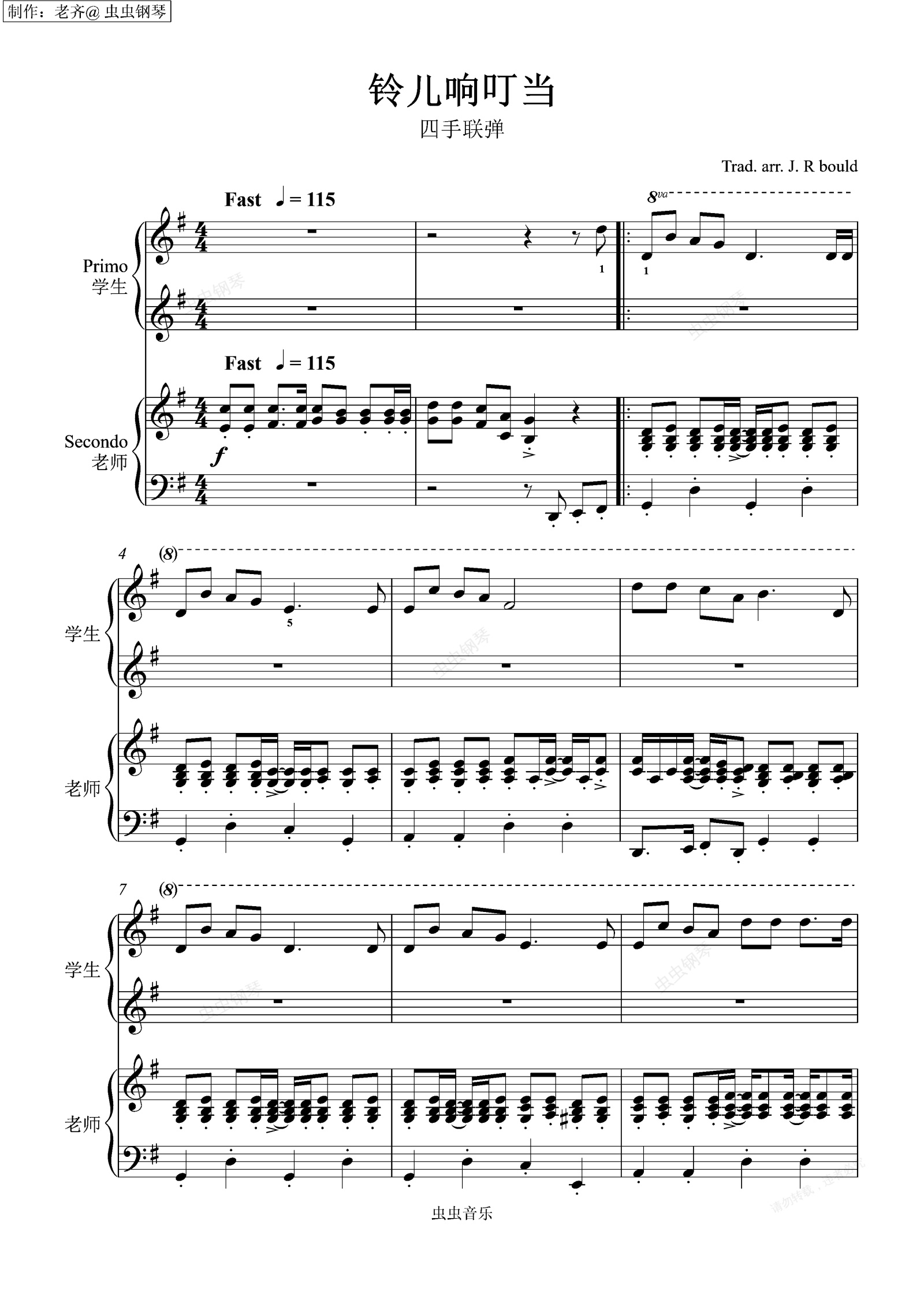 钢琴谱:【四手联弹】铃儿响叮当-简单版