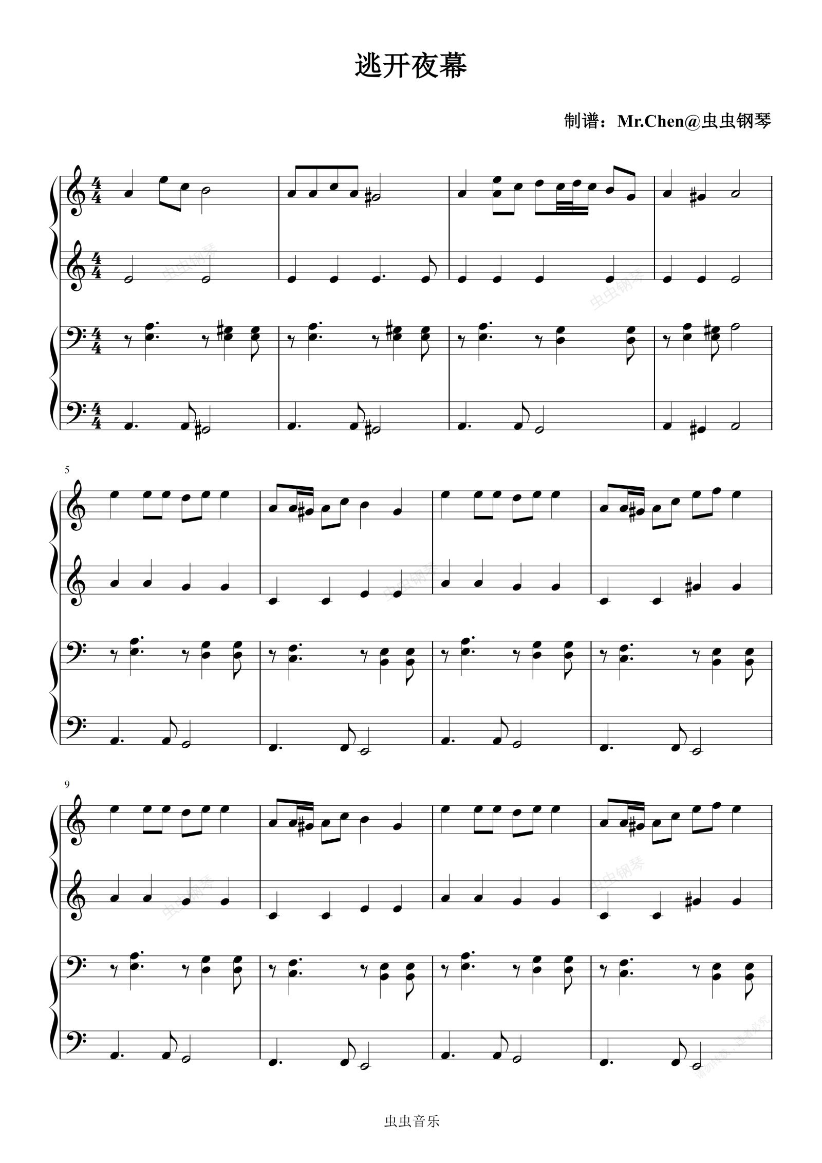 钢琴谱:逃开夜幕 (四手联弹)C调 - 【音乐缘计划】周深