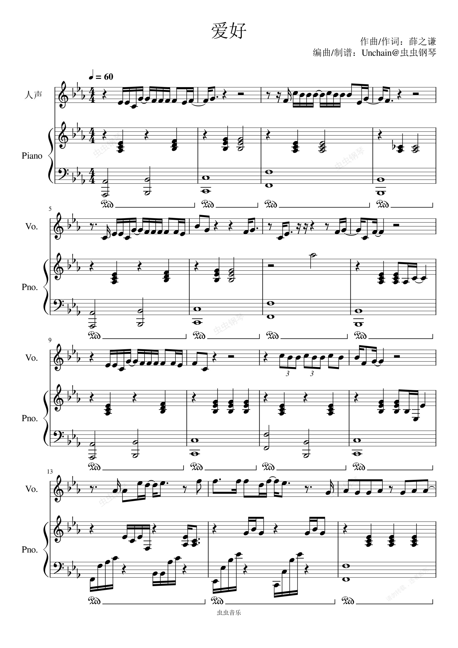 钢琴谱:爱好 弹唱谱 完美还原