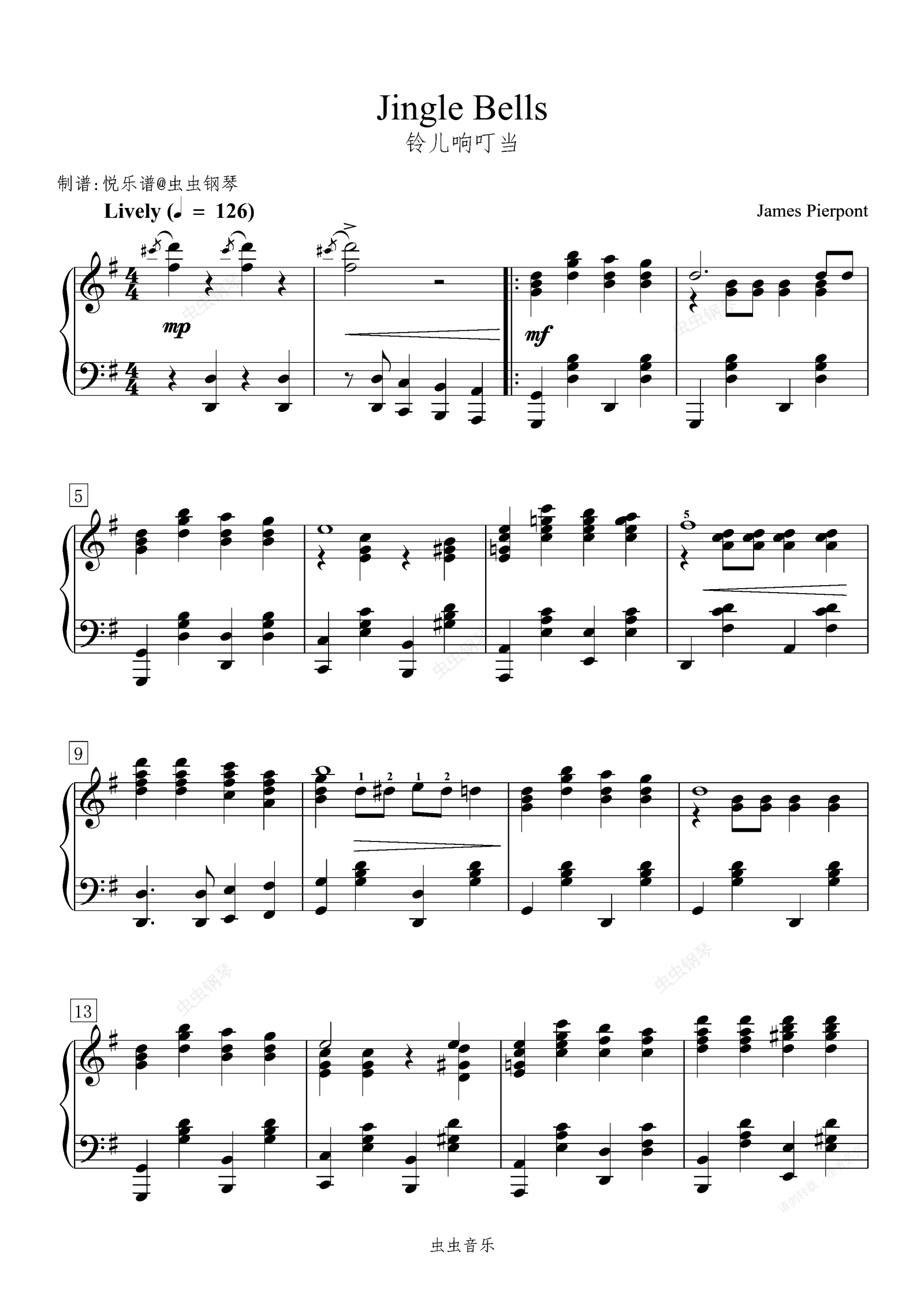 钢琴谱:铃儿响叮当/Jingle Bells 【愉快】