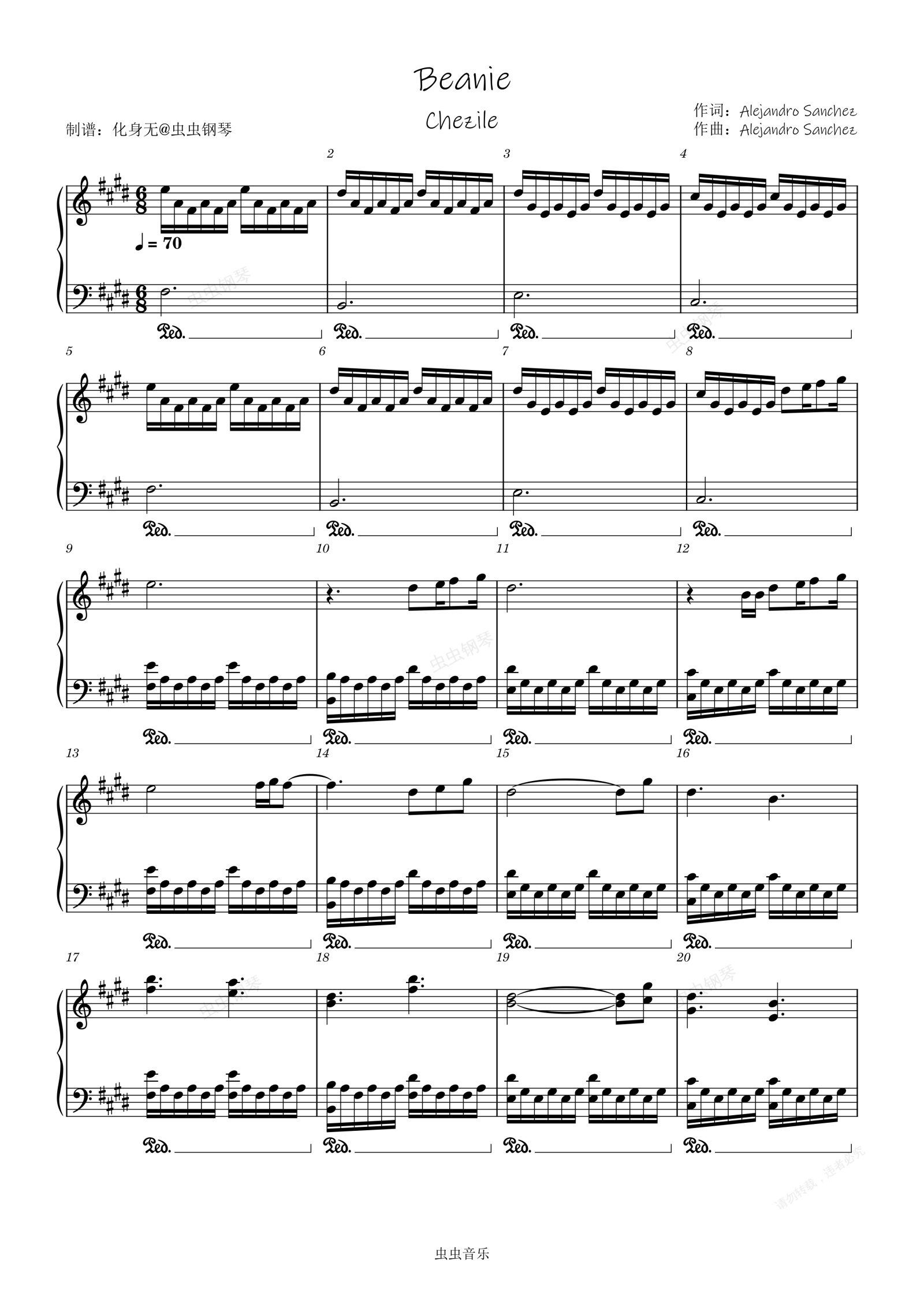 钢琴谱:Beanie 原调独奏版 化身无编配