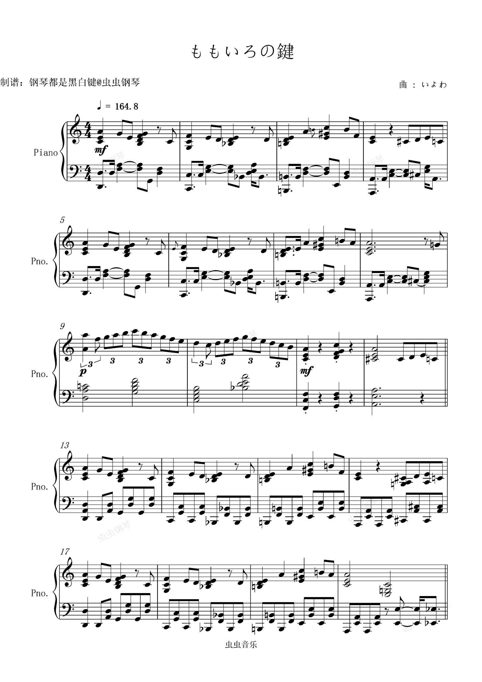 钢琴谱:[初音ミク]ももいろの鍵/桃色钥匙