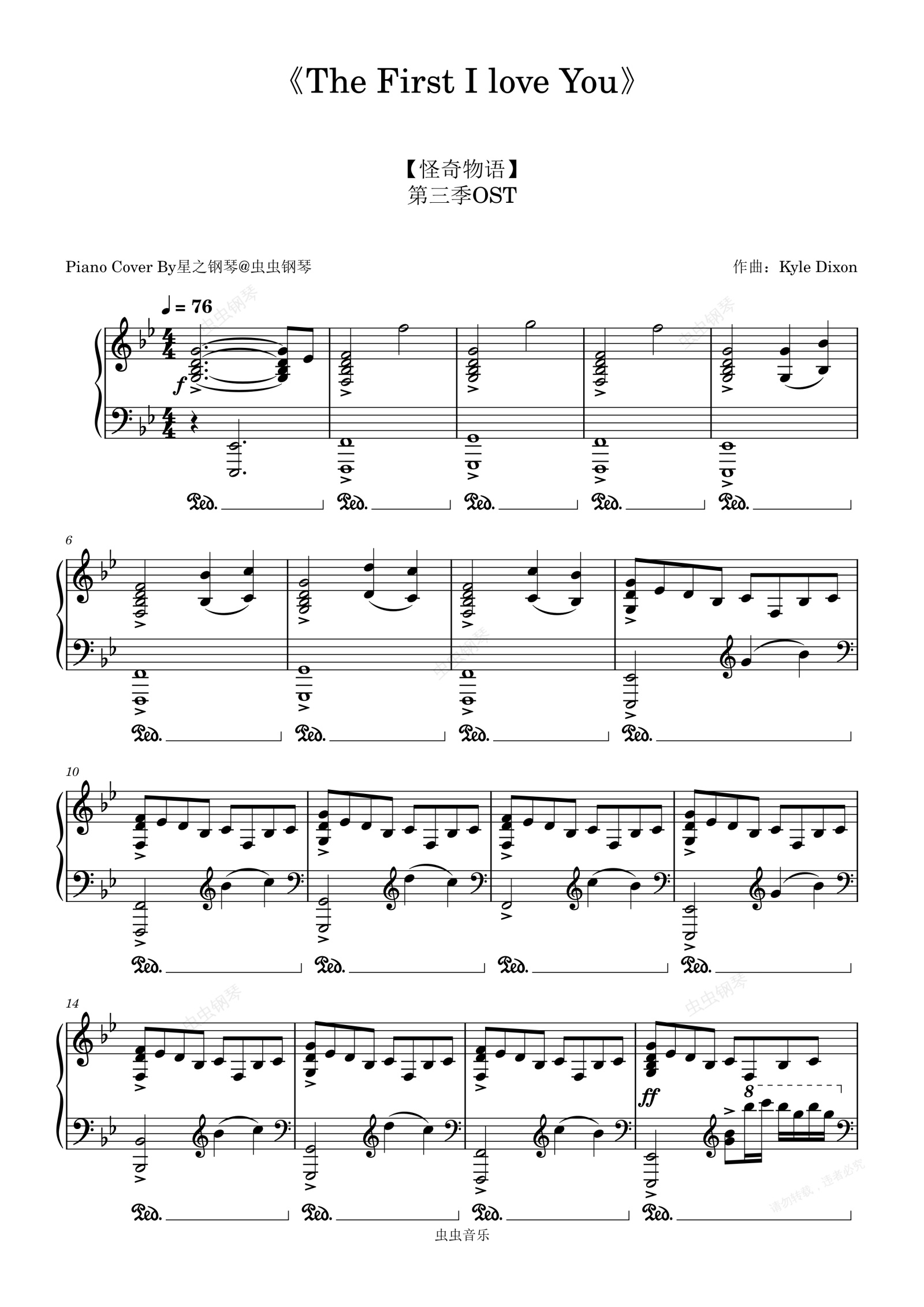 钢琴谱:【怪奇物语】第三季OST《The First I Love You》钢琴独奏版~星之钢琴~