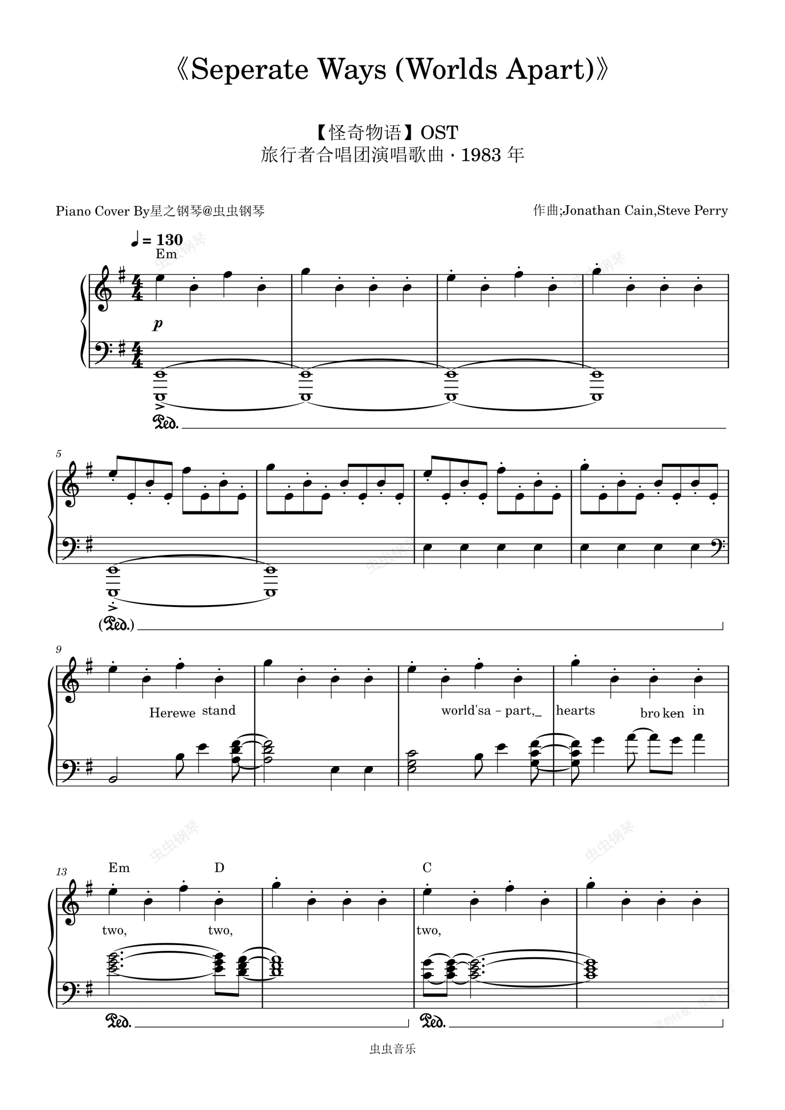 钢琴谱:【怪奇物语】第四季OST《journey separate ways》钢琴独奏版~星之钢琴~