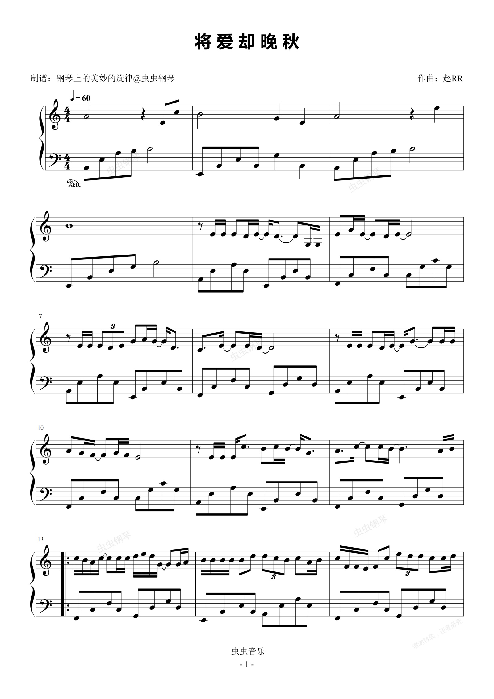 钢琴谱:将爱却晚秋 简易版 灯叔