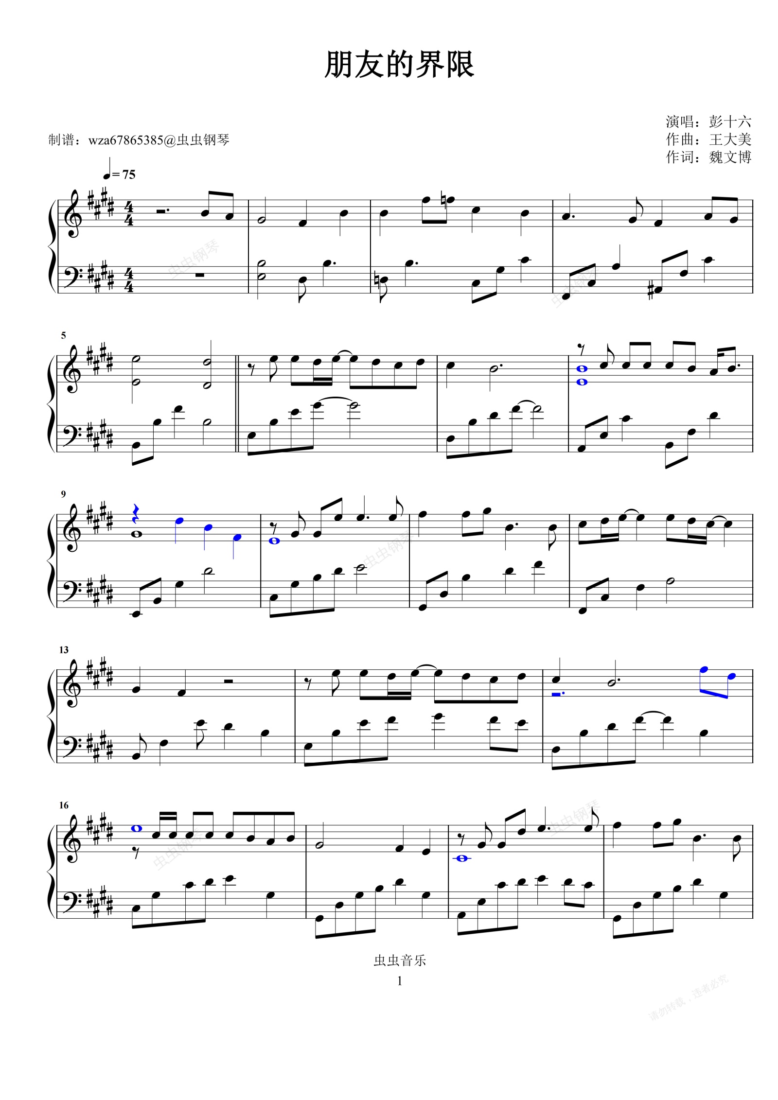 钢琴谱:朋友的界限