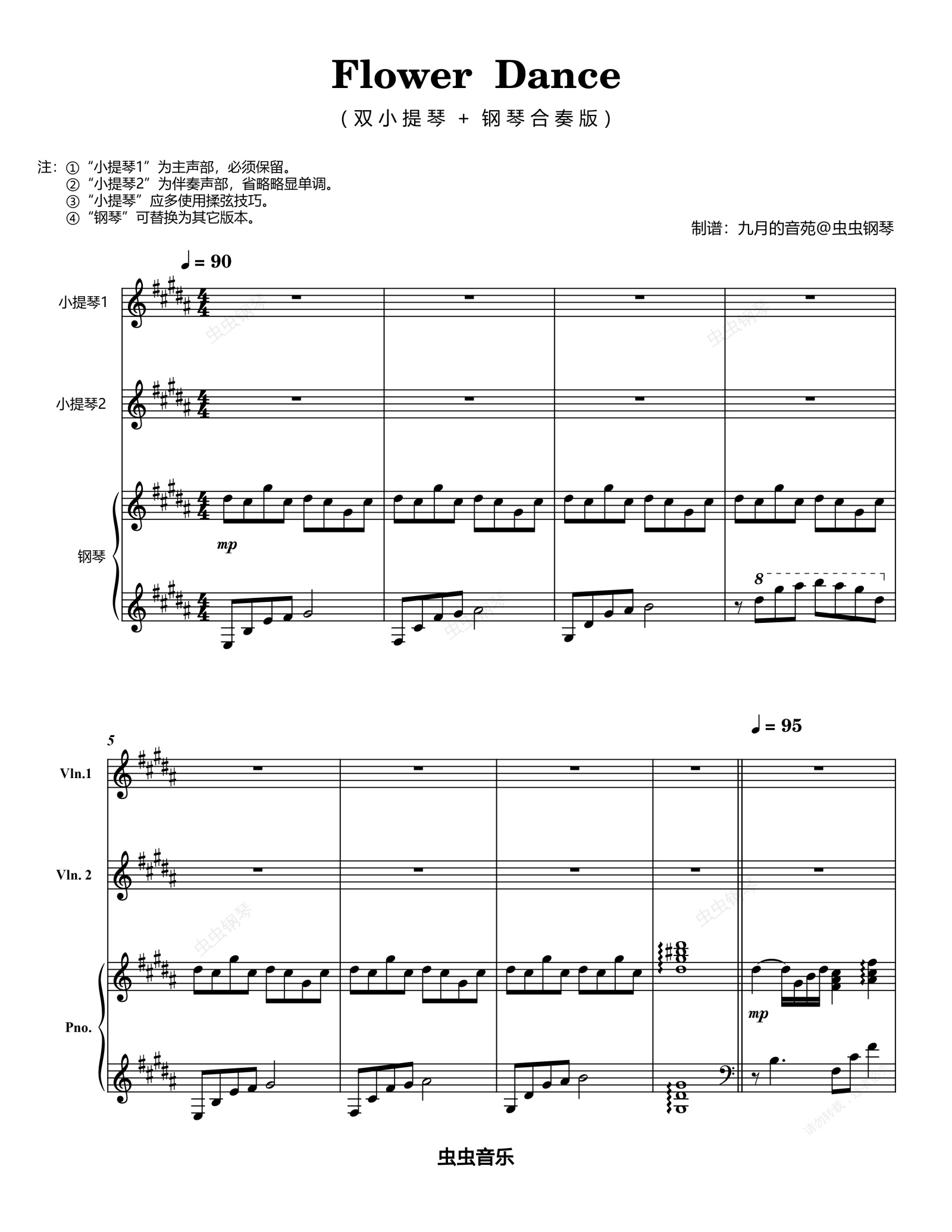 钢琴谱:【Flower Dance】钢琴 + 双小提琴(合奏版)