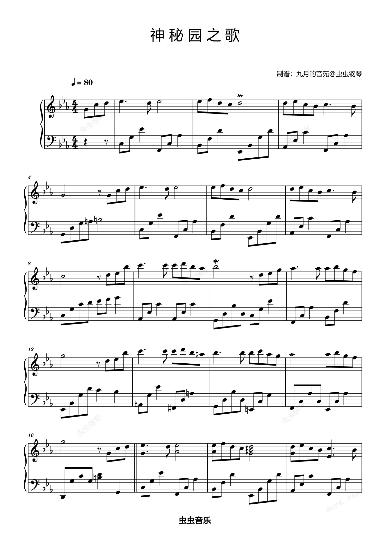 钢琴谱:【神秘园之歌】唯美独奏版(Song From A Secret Garden)