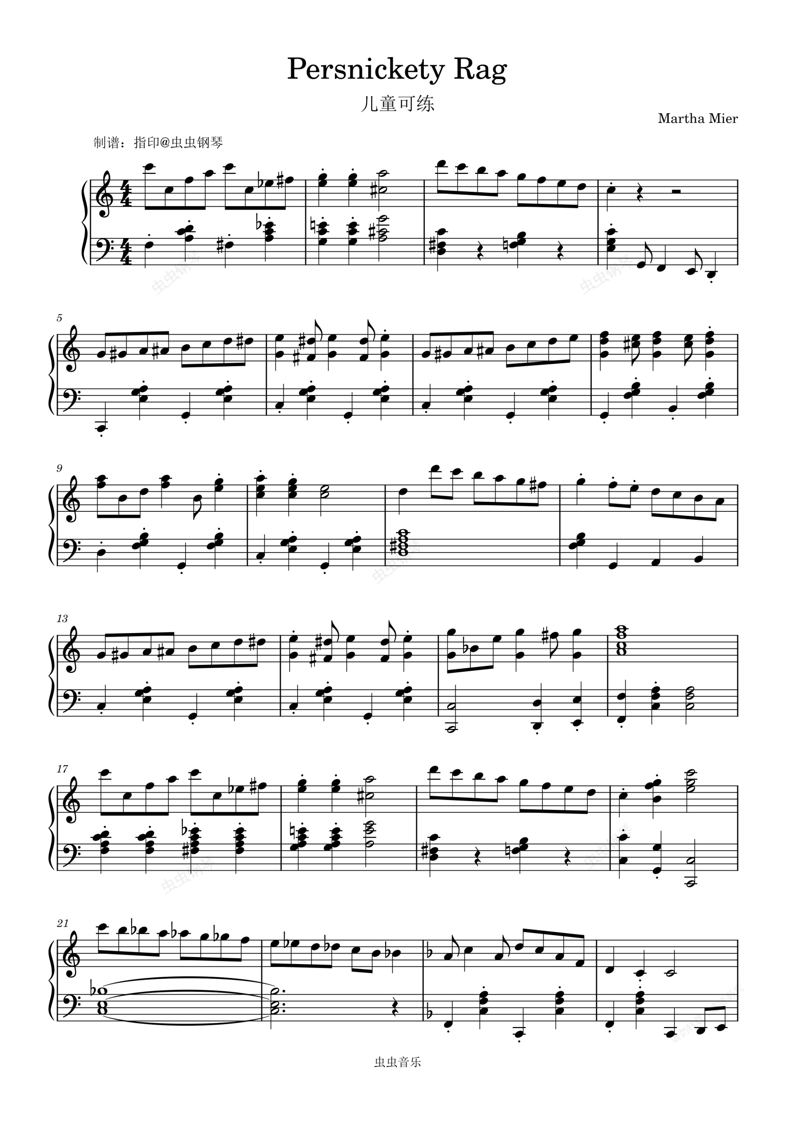 钢琴谱:儿童练习曲《Persnickety Rag》