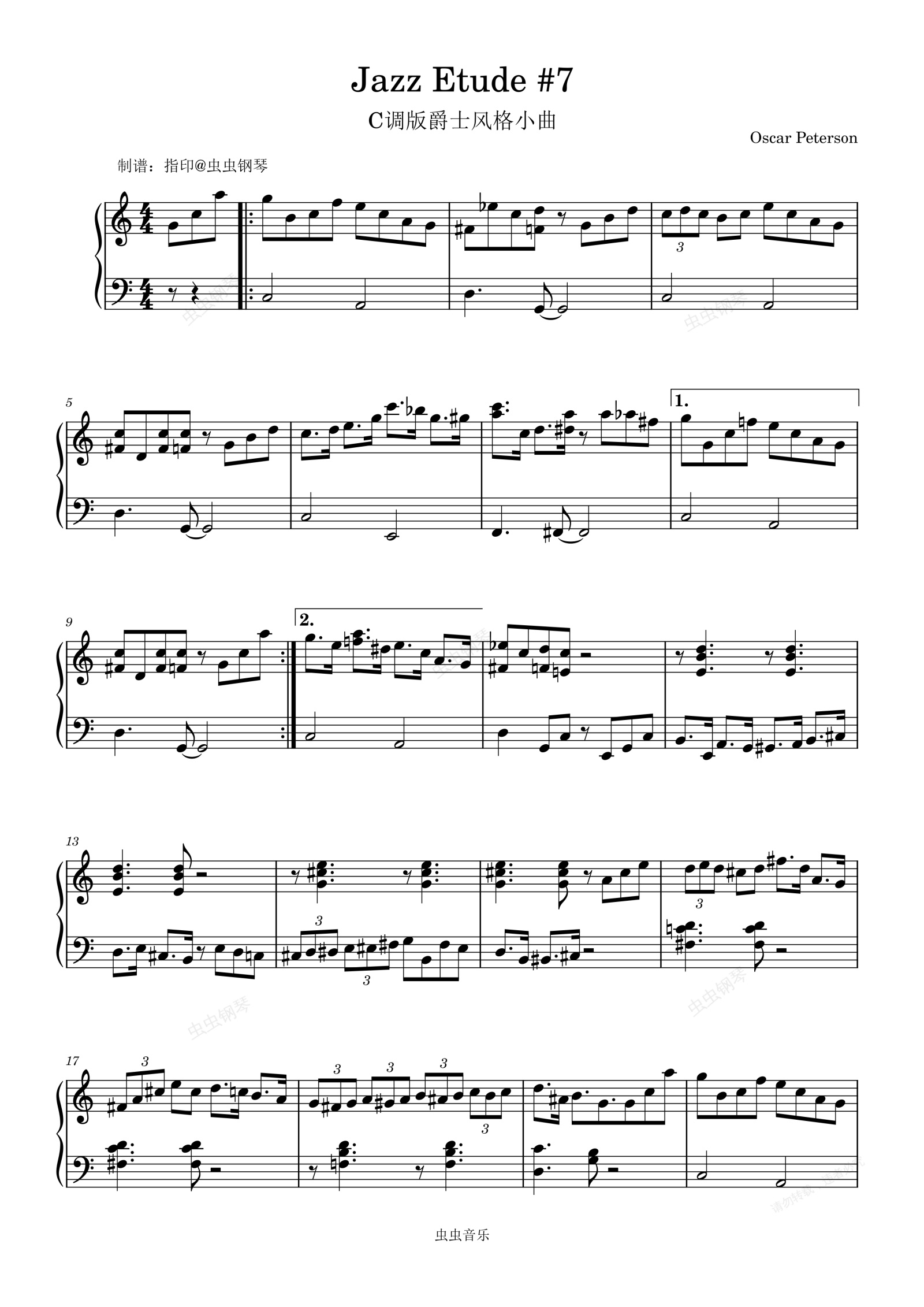 钢琴谱:爵士风小曲C调版《Jazz Etude #7》
