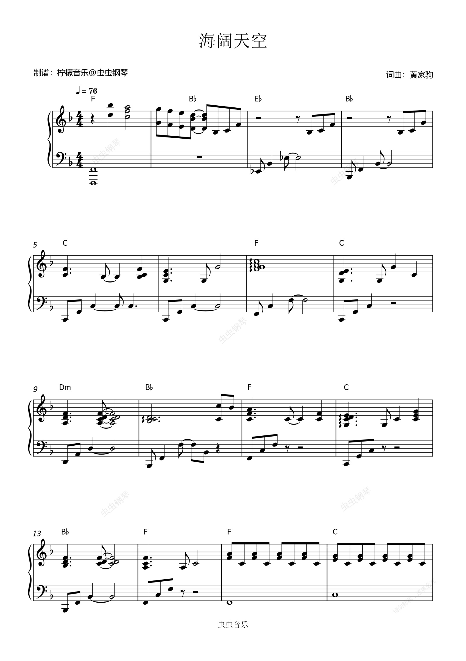 钢琴谱:海阔天空-纯钢琴伴奏声部