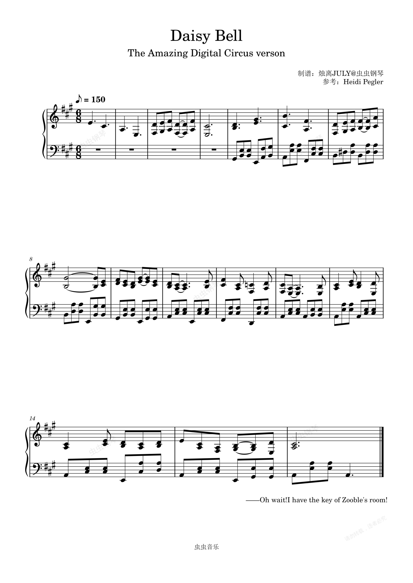 钢琴谱:Daisy Bell-神奇数字马戏团片段还原